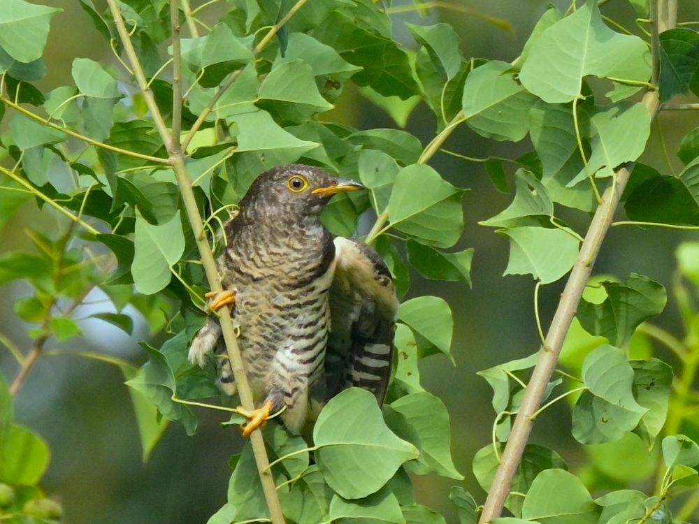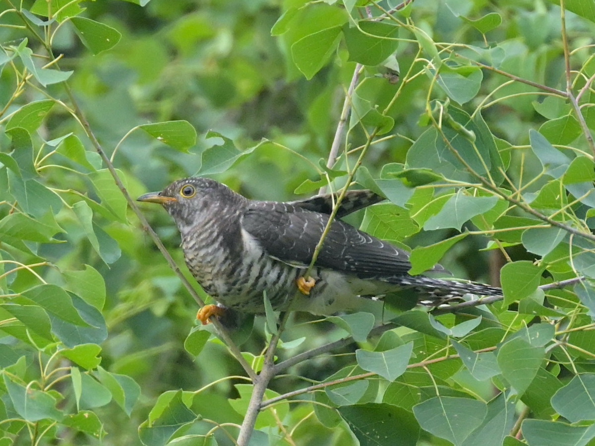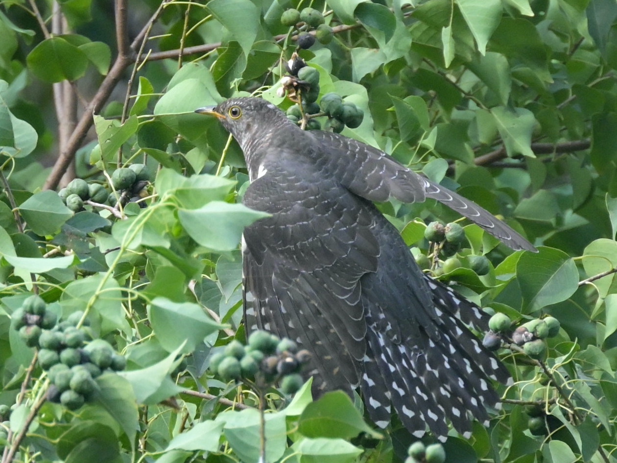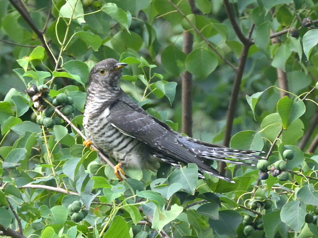 今年は春も秋もなかなかトケンにあえませんでしたが、 先日、カッコウの幼鳥にあえました。 実には用事がなさそうですが、樹木の中に潜んでいて、青虫を採餌しに 出てきてくれました。 トケンらしくないような細い枝に留まって、バランスを崩したりしてました。