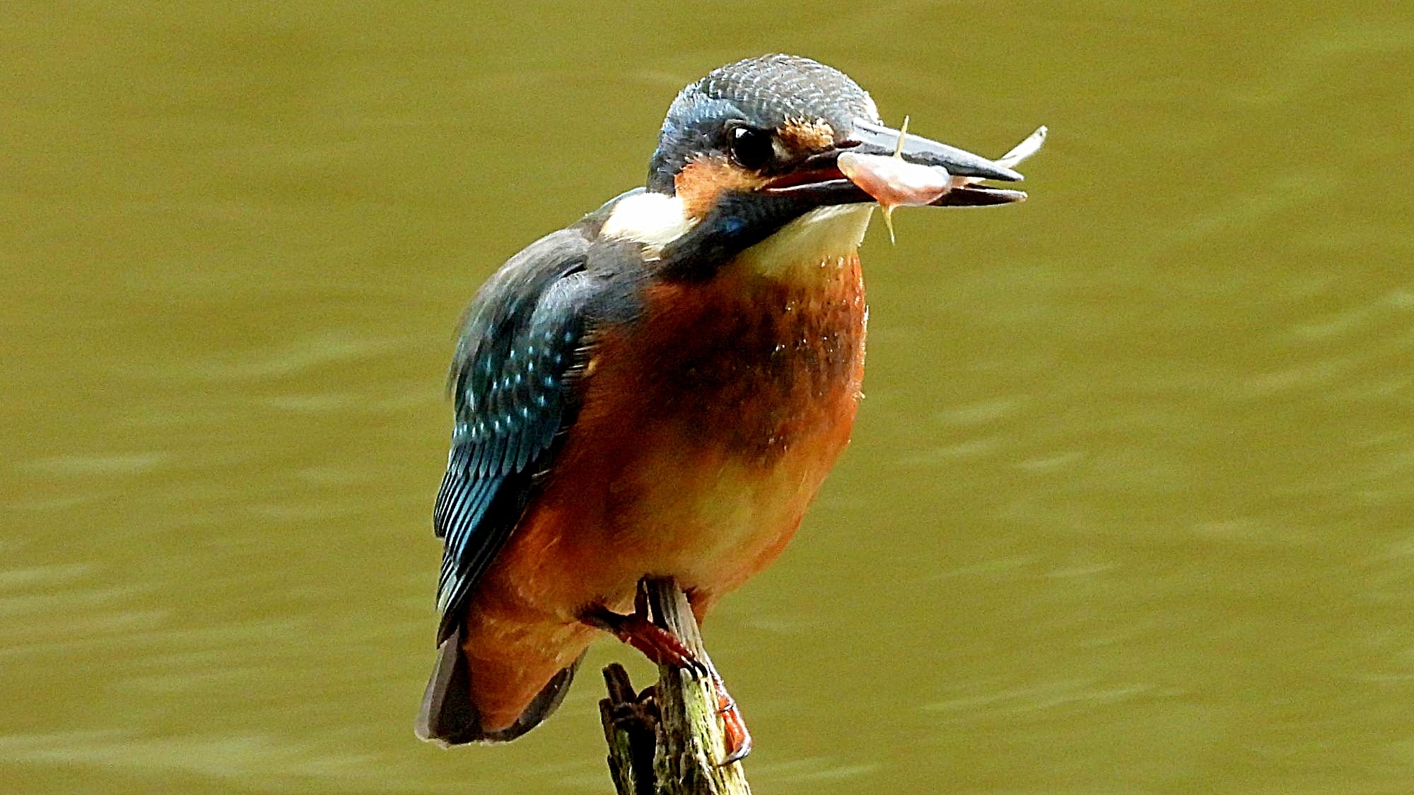 カワセミ各作品は、餌を咥えて止まり木に止まった所を捉え、目に光が入って水面バックにカワセミが引き立っています。