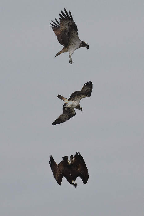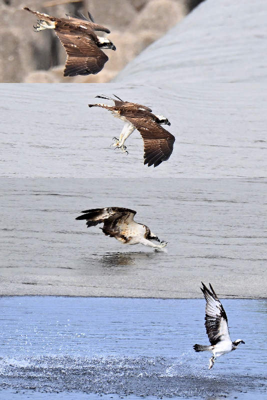 上空からの飛び込み作品は、刻々とミサゴの形が変化していくのが良く表現されてお見事です。
