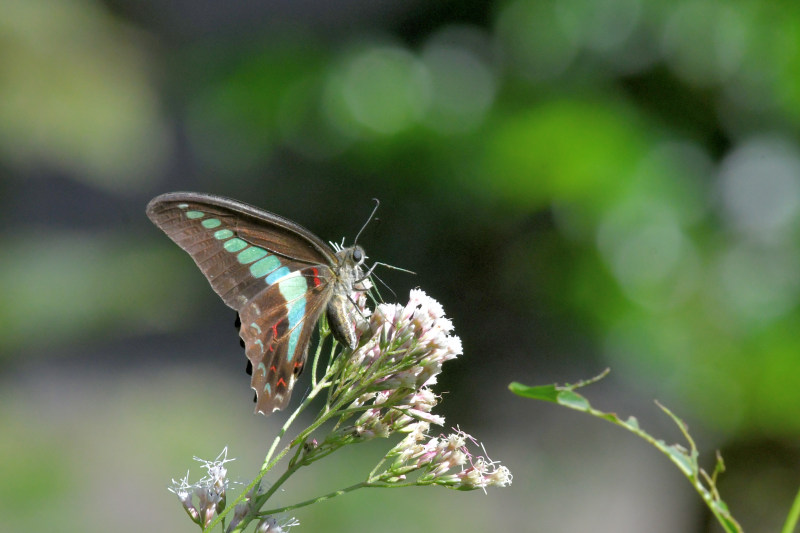 アオスジ作品は、フジバカマの花の蜜を吸い飛来した所を捉え、こちらもバックが抜けてチョウが引き立って、とても鮮明に撮られ流石です。