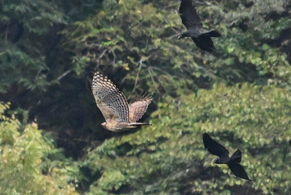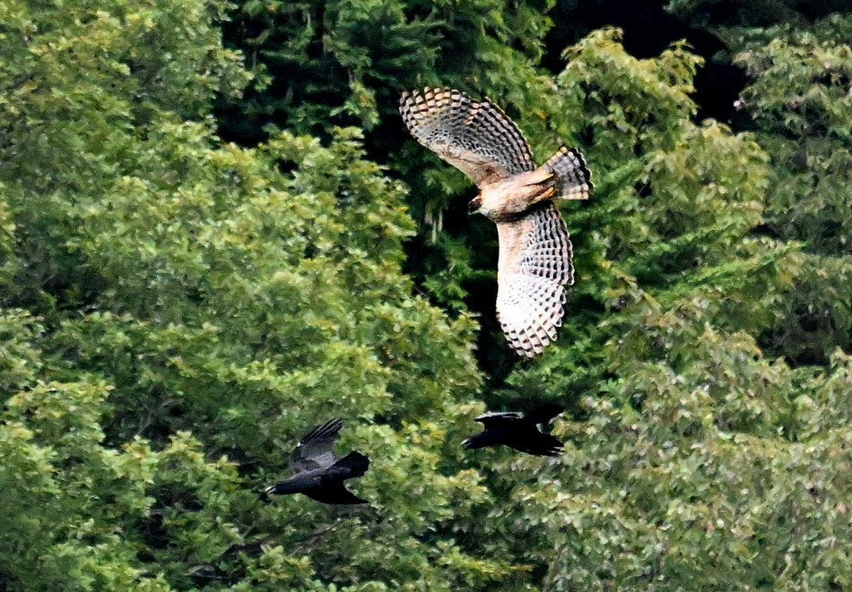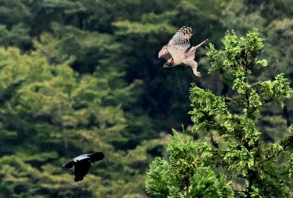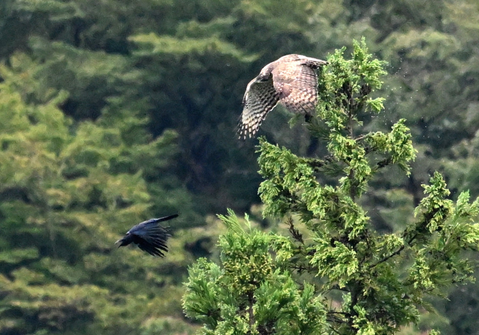 クマタカ作品は、とても遠い距離の所でカラスとのバトル場面を撮られ、クマタカもカラス2羽には勝てないようで逃げ出してしまったようですね。
