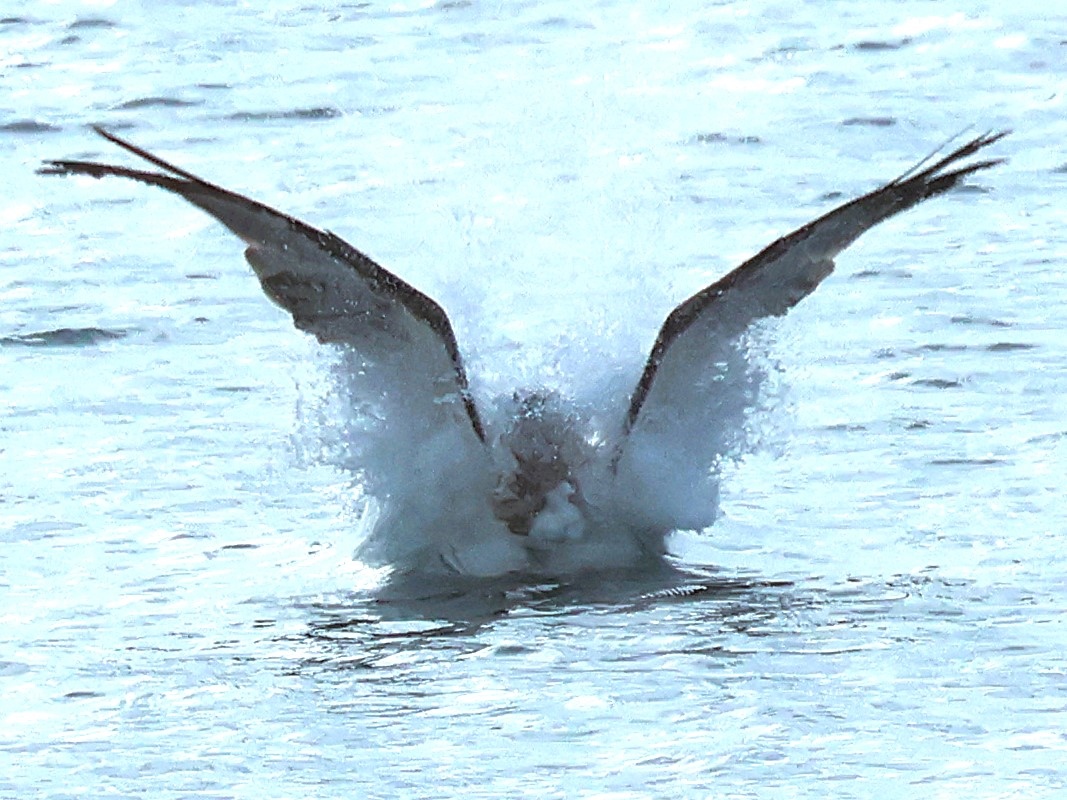青空で水面が映えているにもかかわらず、150m以上離れているのでしょうか、飛び込み回数は多そうなのにちょっと期待外れでがっかりでしたね。