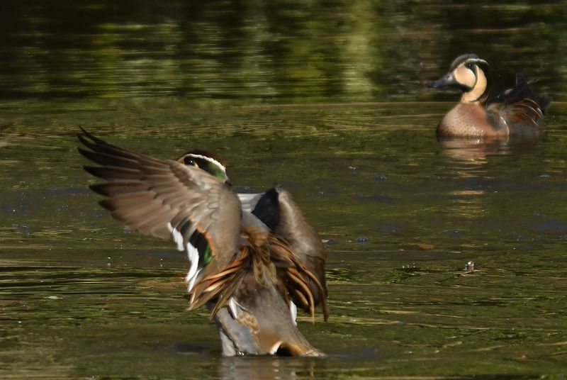 強風を避けてマムシ公園にトモエガモを撮りに移動しました。