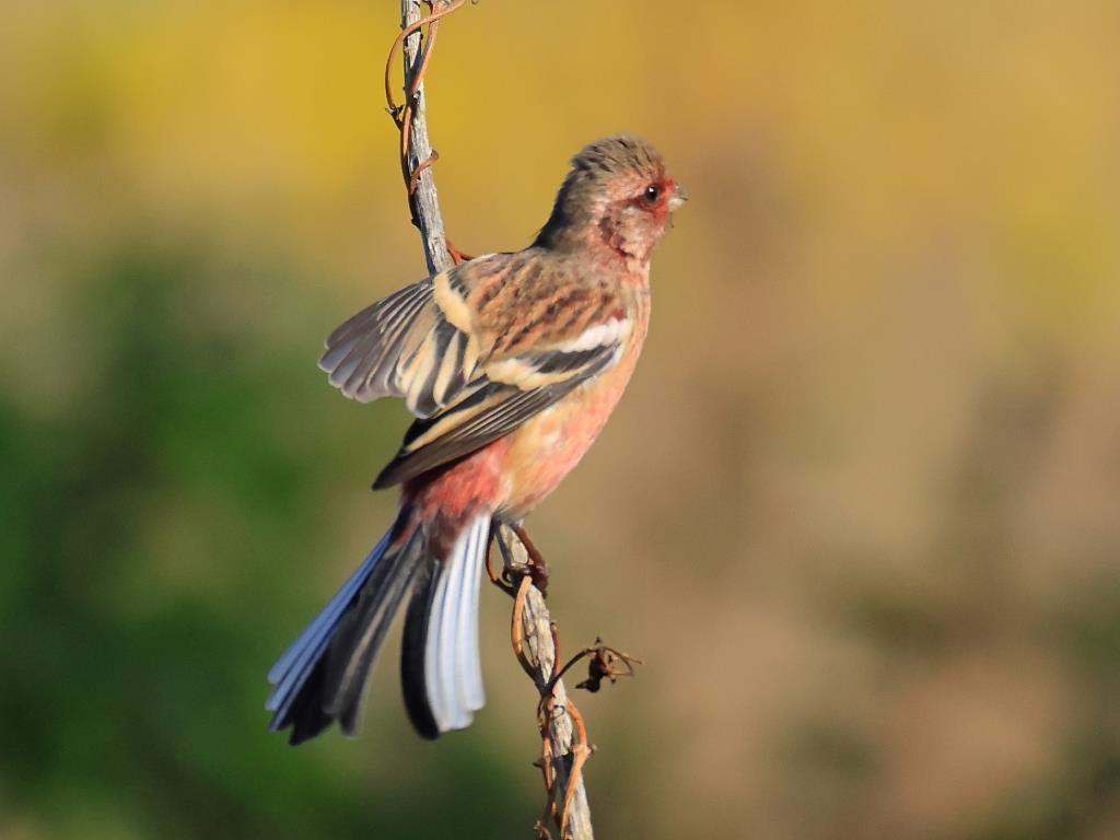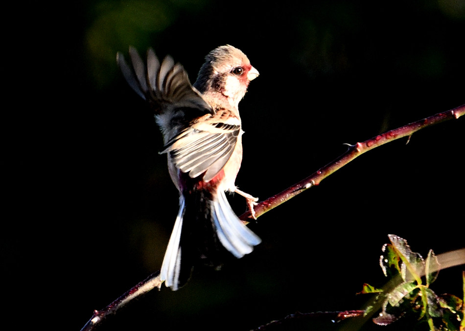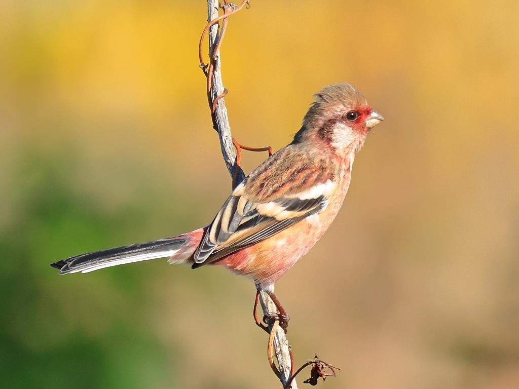 ベニマシコの出が悪い中、枝に止まった所を捉え、バックが抜けた所の作品は目にしっかり光が入って、ベニマシコの赤が綺麗で引き立っています。