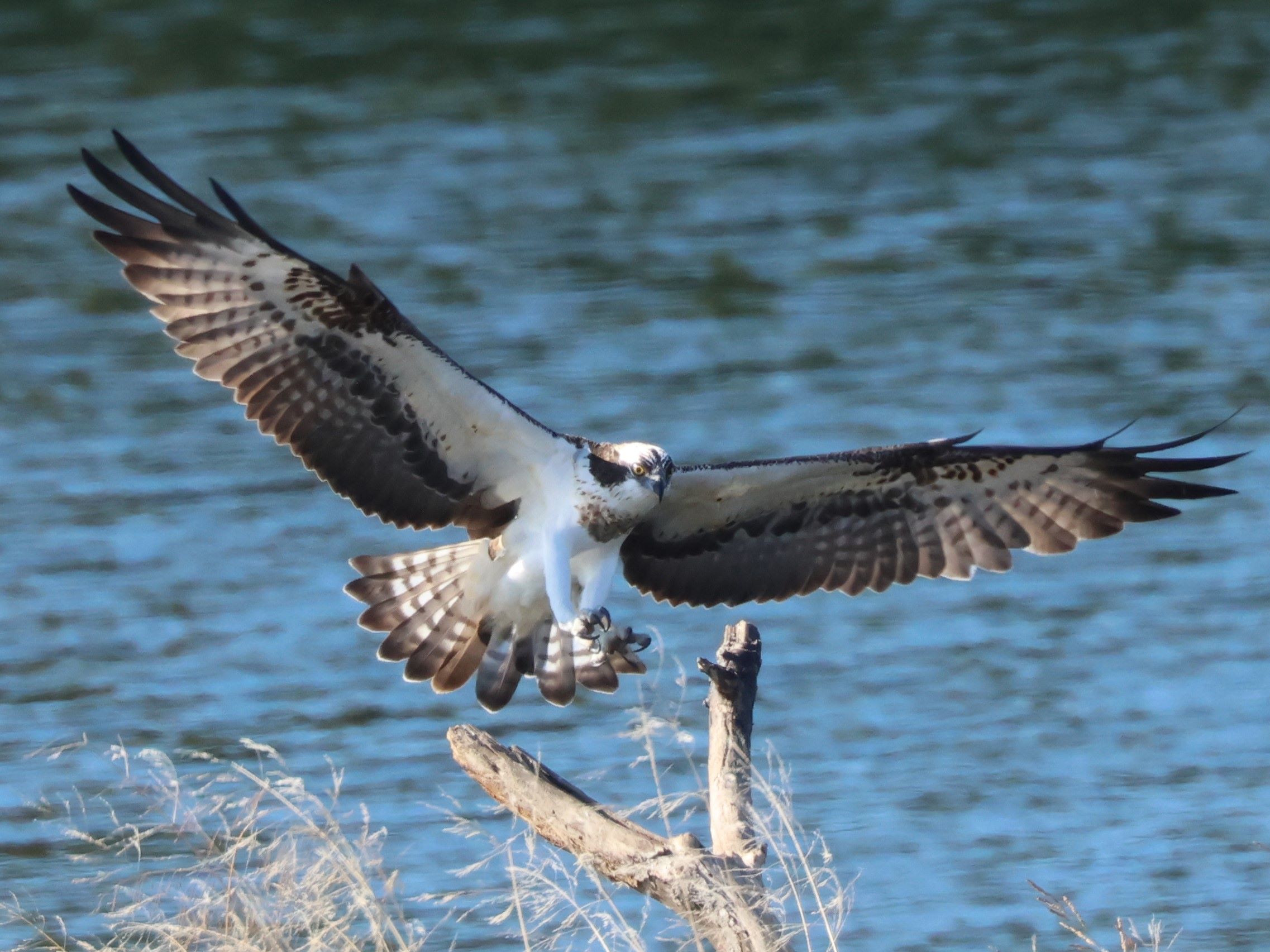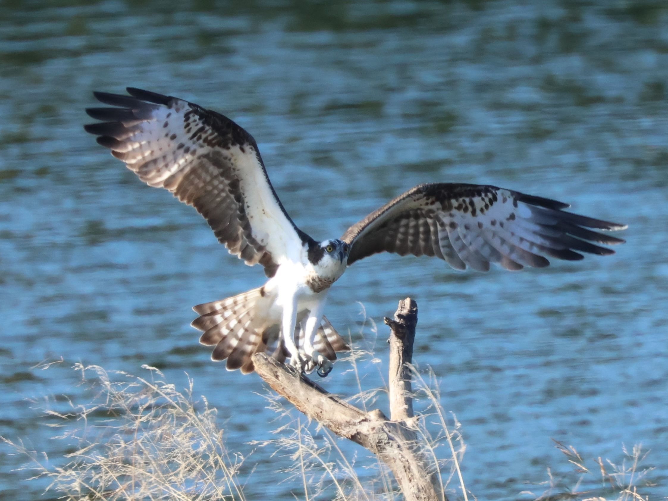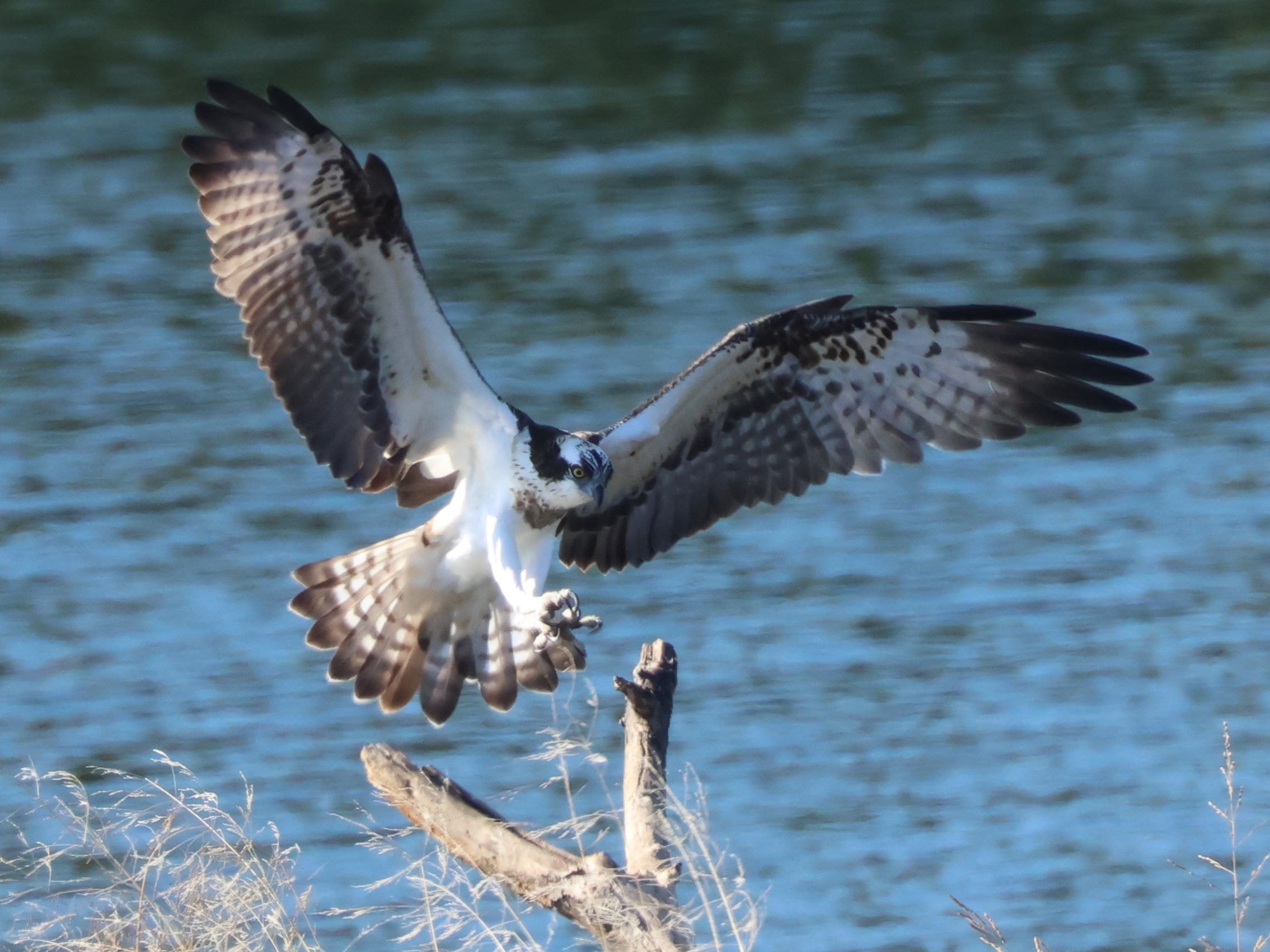 ミサゴの枯れ木への飛び着き作品は、連射で撮られ、大きく羽が開いて止まる瞬間は目に光が入って、躍動感があります。