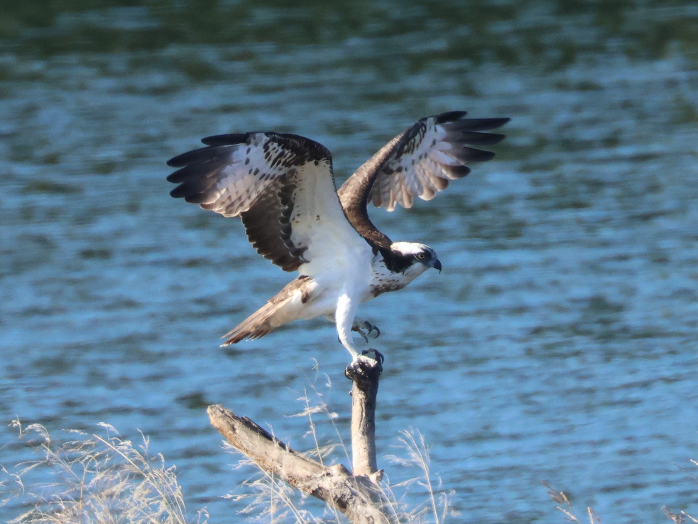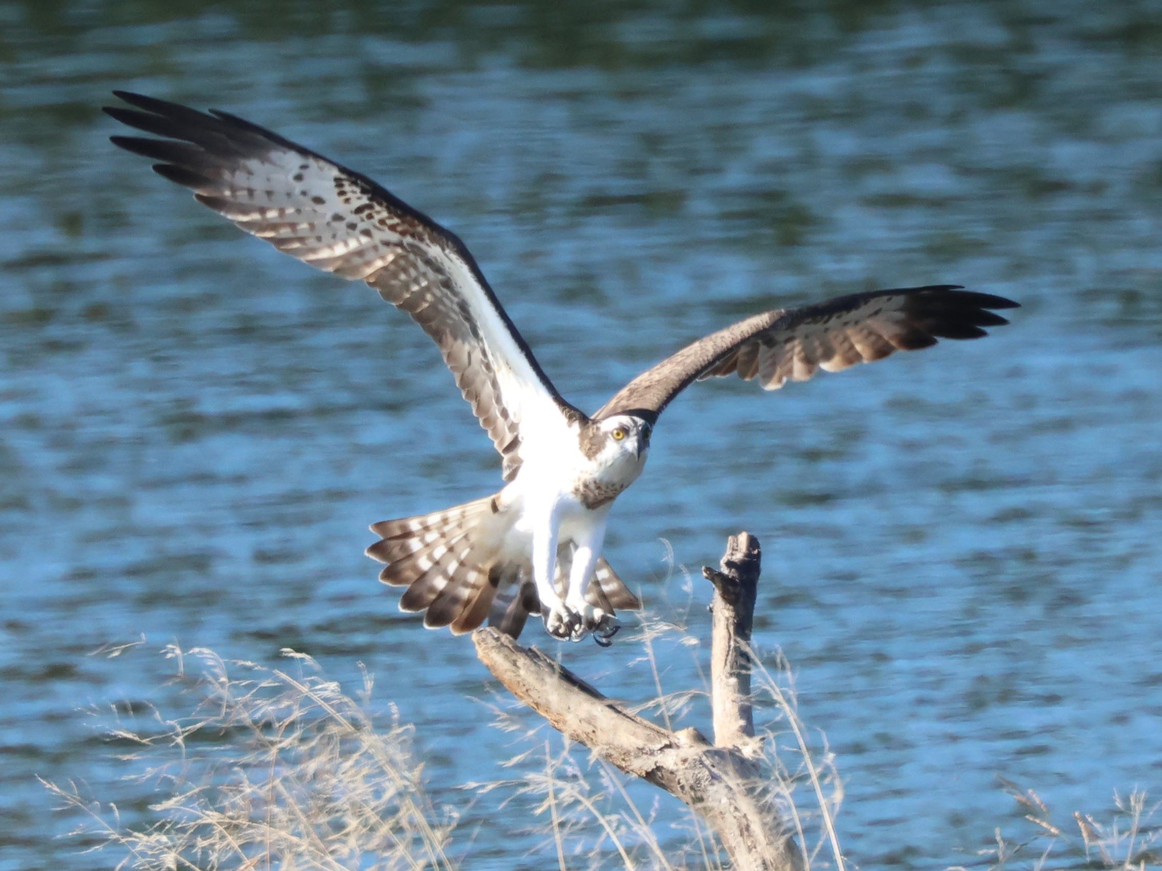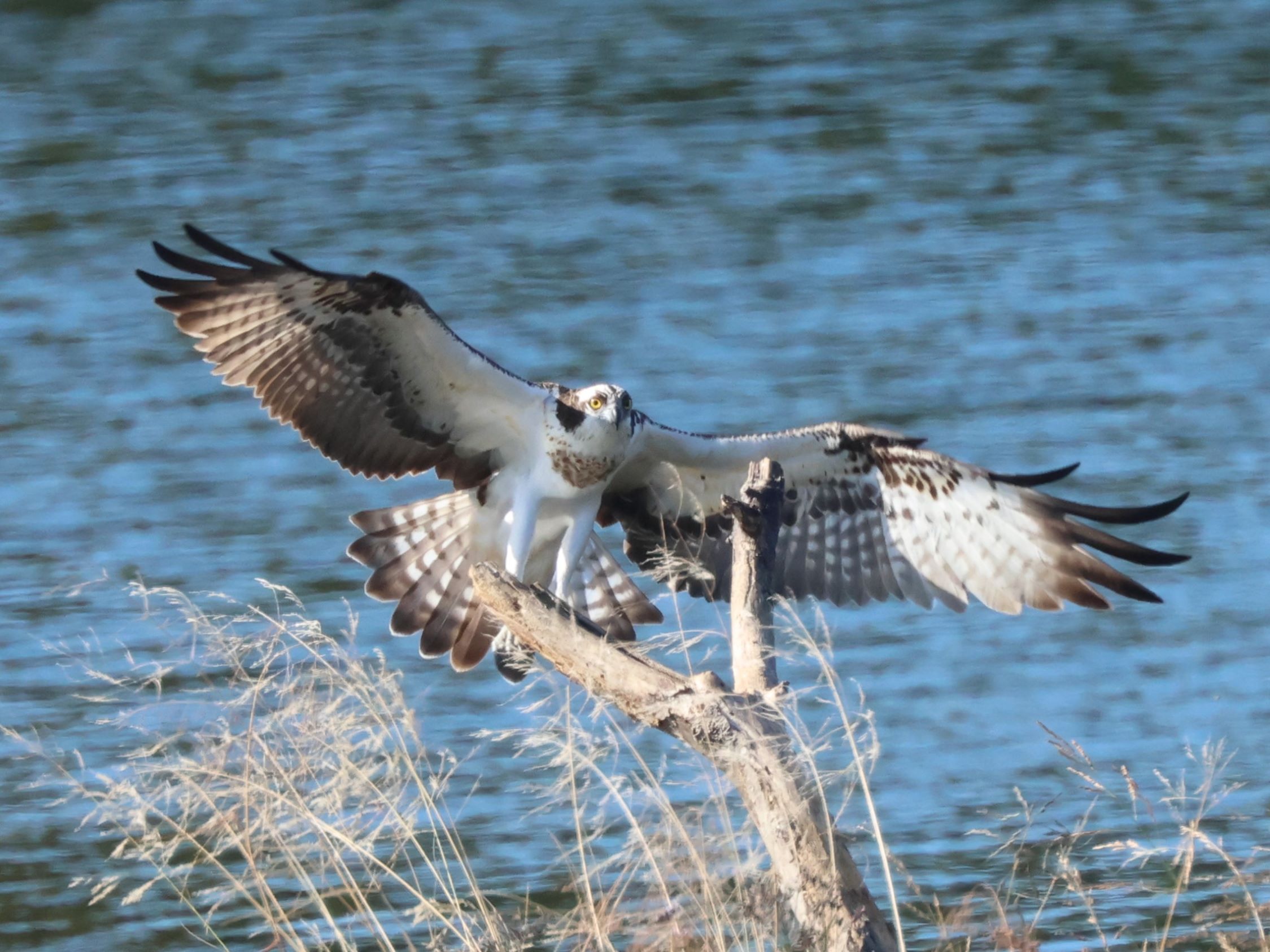 ミサゴの枯れ木への飛び着き作品は、連射で撮られ、大きく羽が開いて止まる瞬間は目に光が入って、躍動感があります。