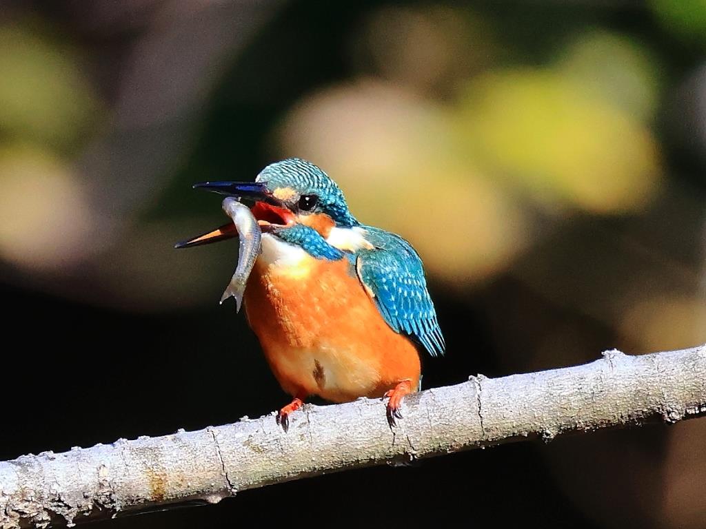 魚を咥えた作品は、大きな魚を咥えて、目にしっかり光が入って、コバルトブルーの頭部と羽根が鮮やかで、バックが抜けてカワセミが浮き出ています。