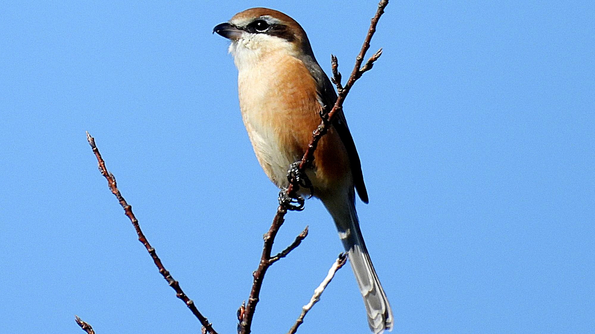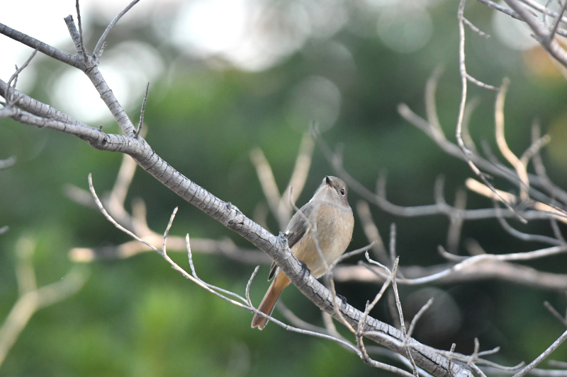 ジョウビタキ♀作品は、枝に止まった所を捉え、斜め上を見上げる仕草の目が可愛いです。