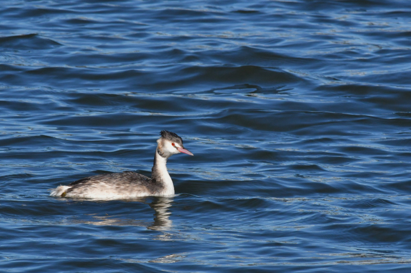 カンムリカイツブリ作品は、濃紺の水面に目が真っ赤なカンムリカイツブリが映え見応えがあります。
