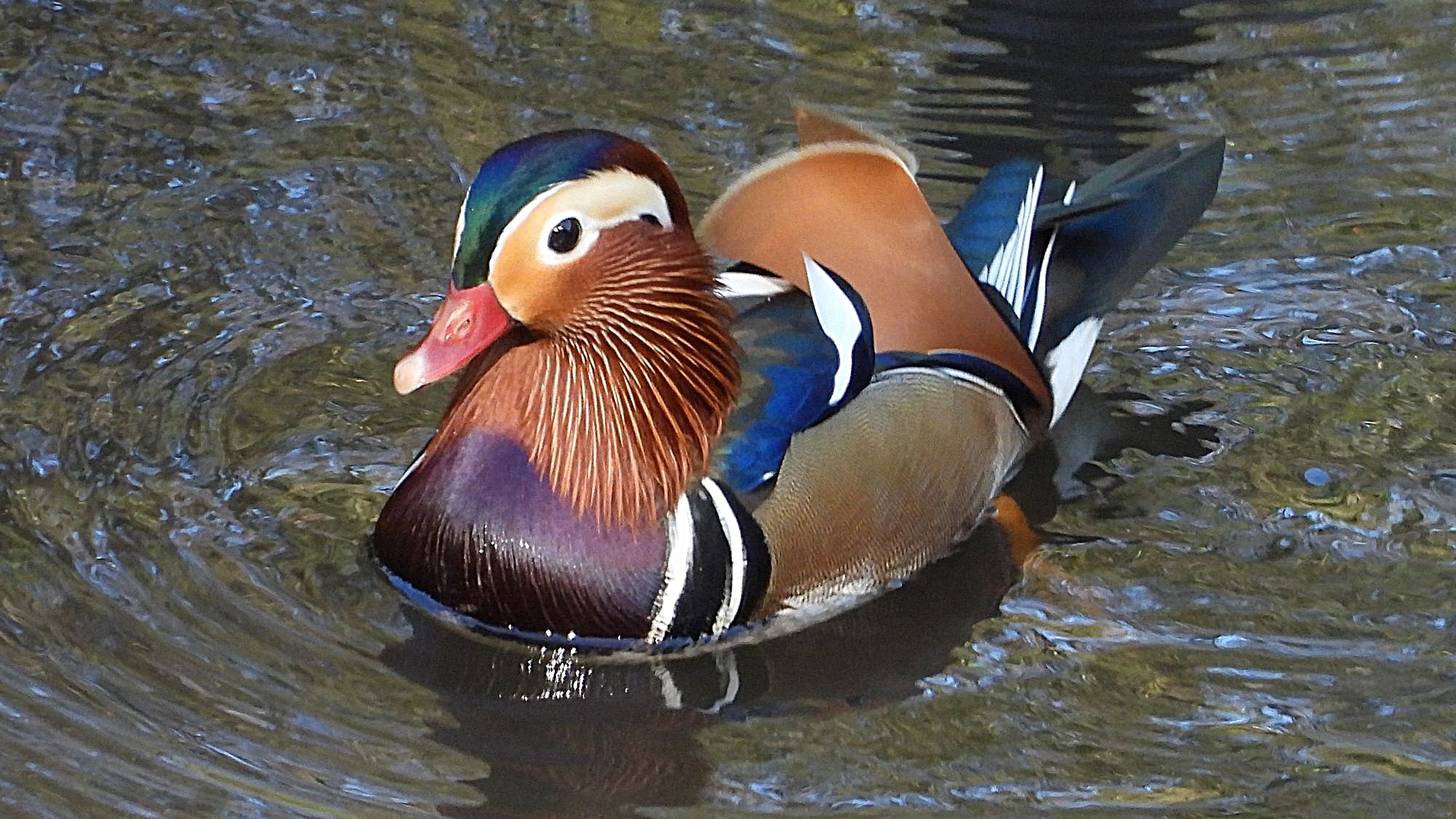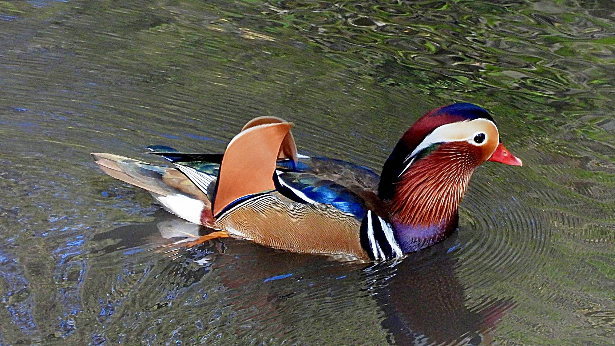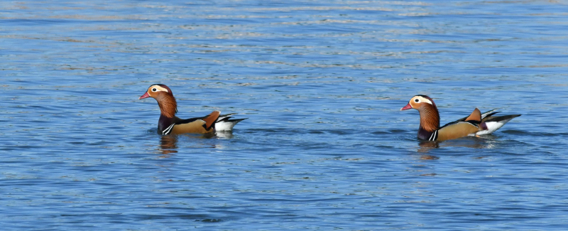オシドリ作品は、私も今季初撮りでオシドリを撮りましたが、青空が広がる中、青い水面にとてもカラフルなオシドリが似合います。