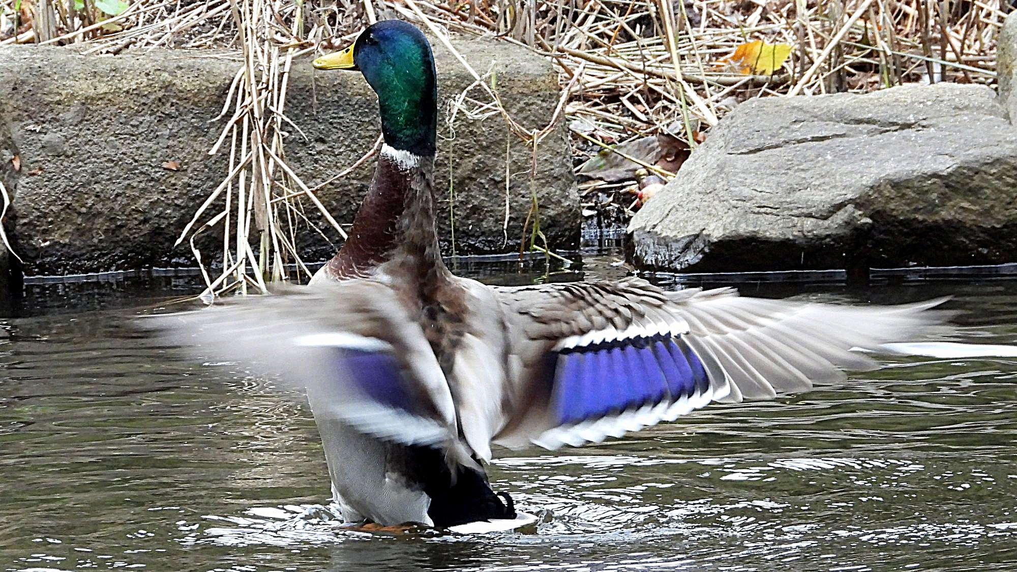 カマキリ、デーニッツハエトリ、マガモの羽ばたき