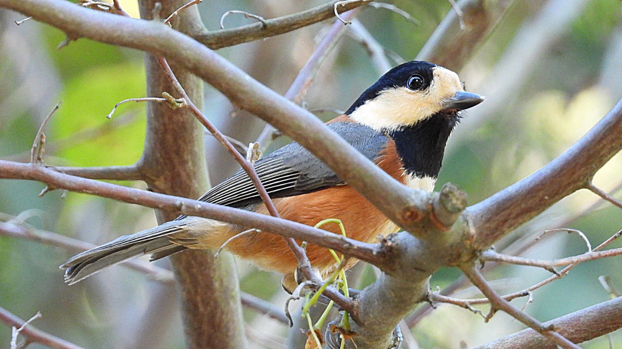 百舌鳥、ヤマガラ、種類のわからない小鳥、オシドリ、ガビチョウ、スズメバチ