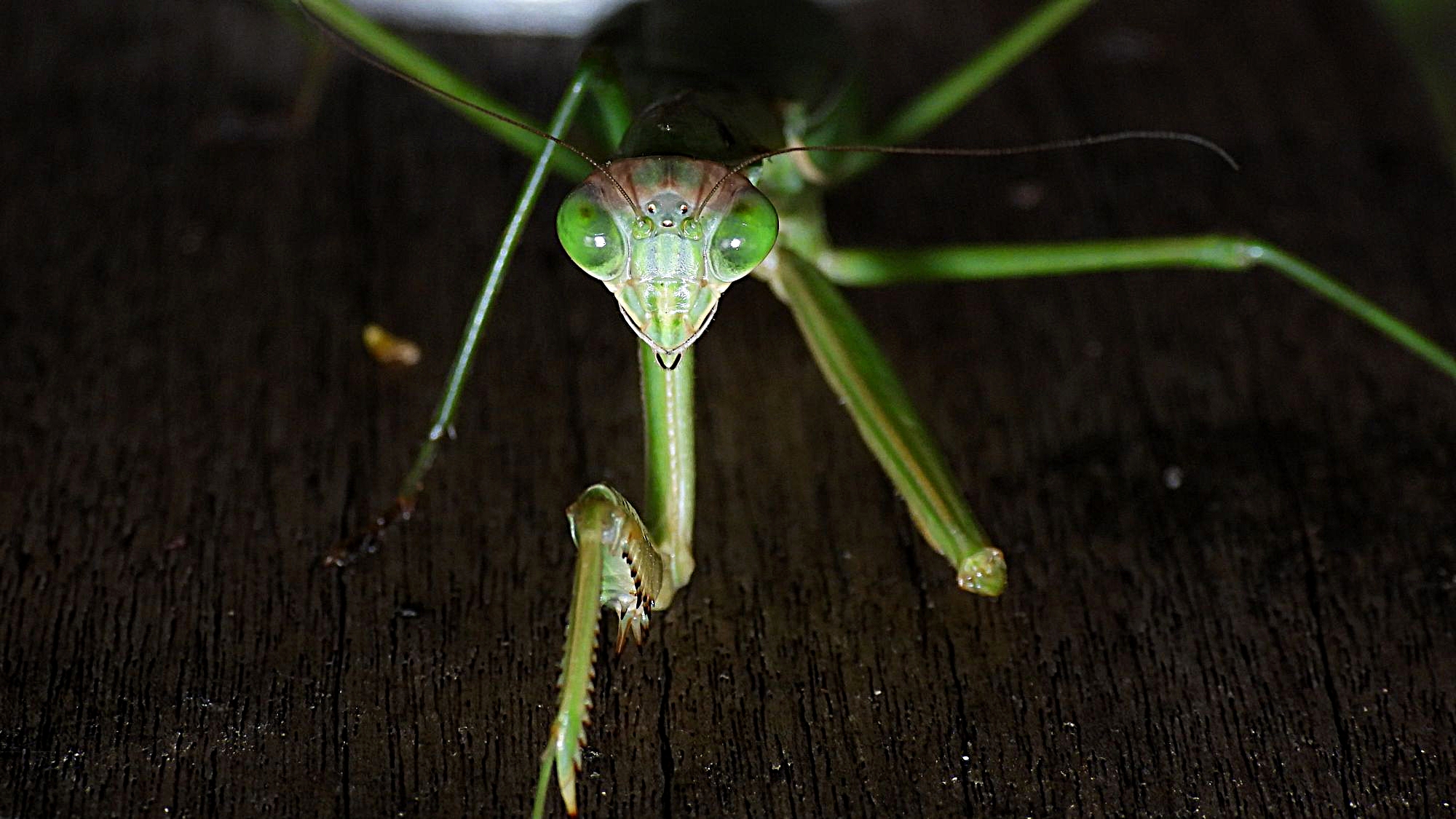 カマキリ作品は、正面顔をドアップで捉え、目の描写がとても鮮明で見応えがあります。