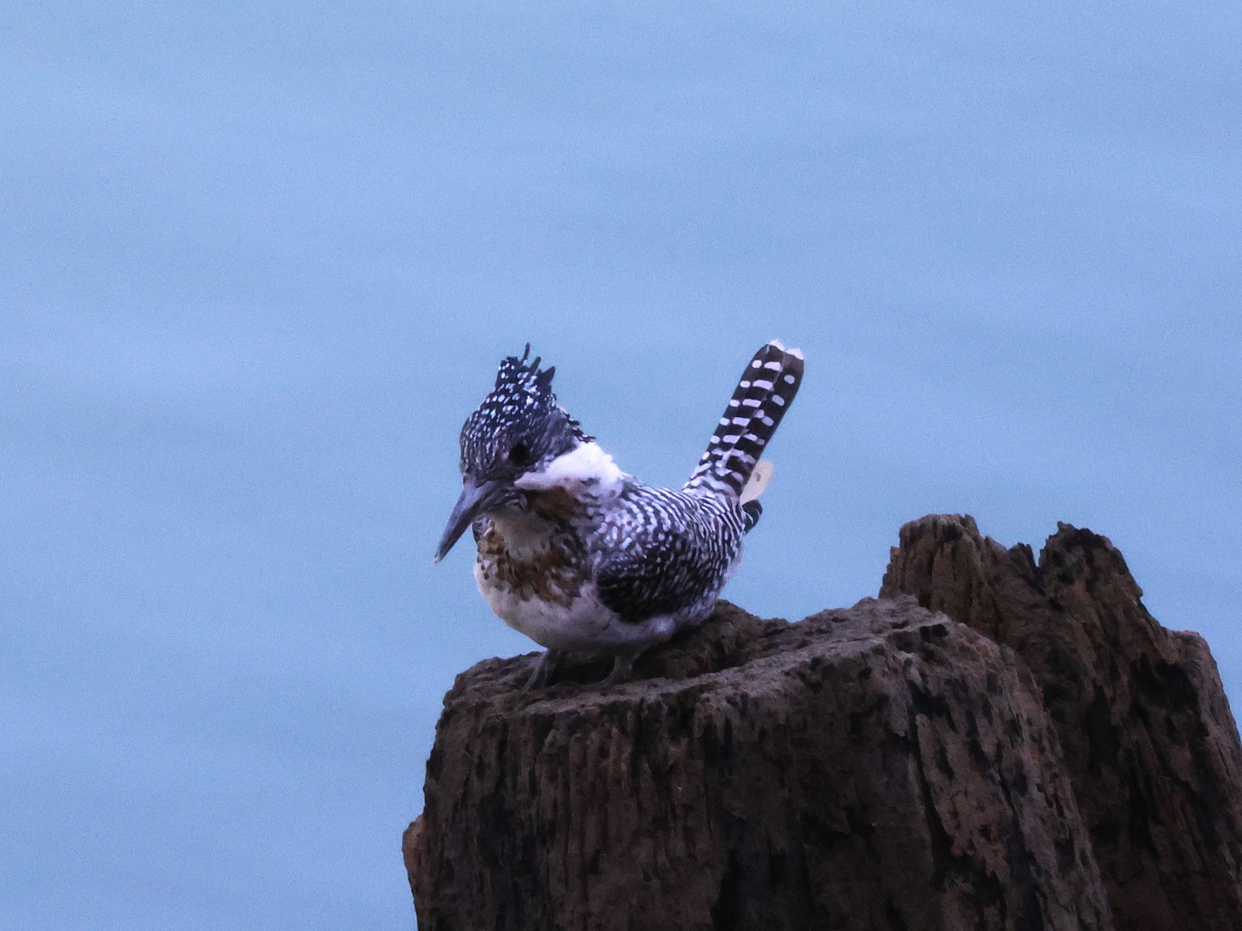 合い言葉 カワセミの仲間で白と黒の鹿の子模様で、ハトぐらいの大きさの野鳥の名称は? カタカナで4文字。