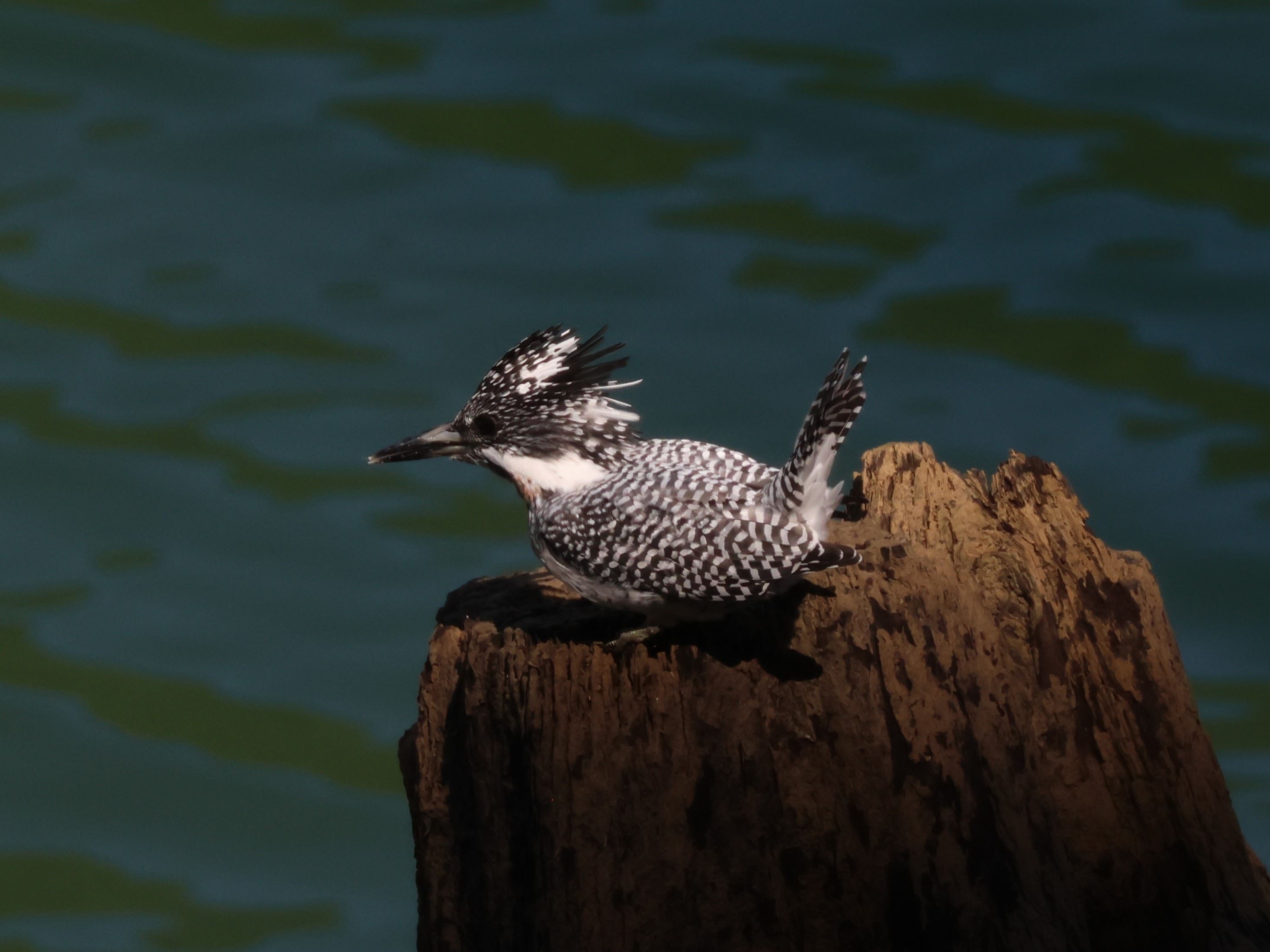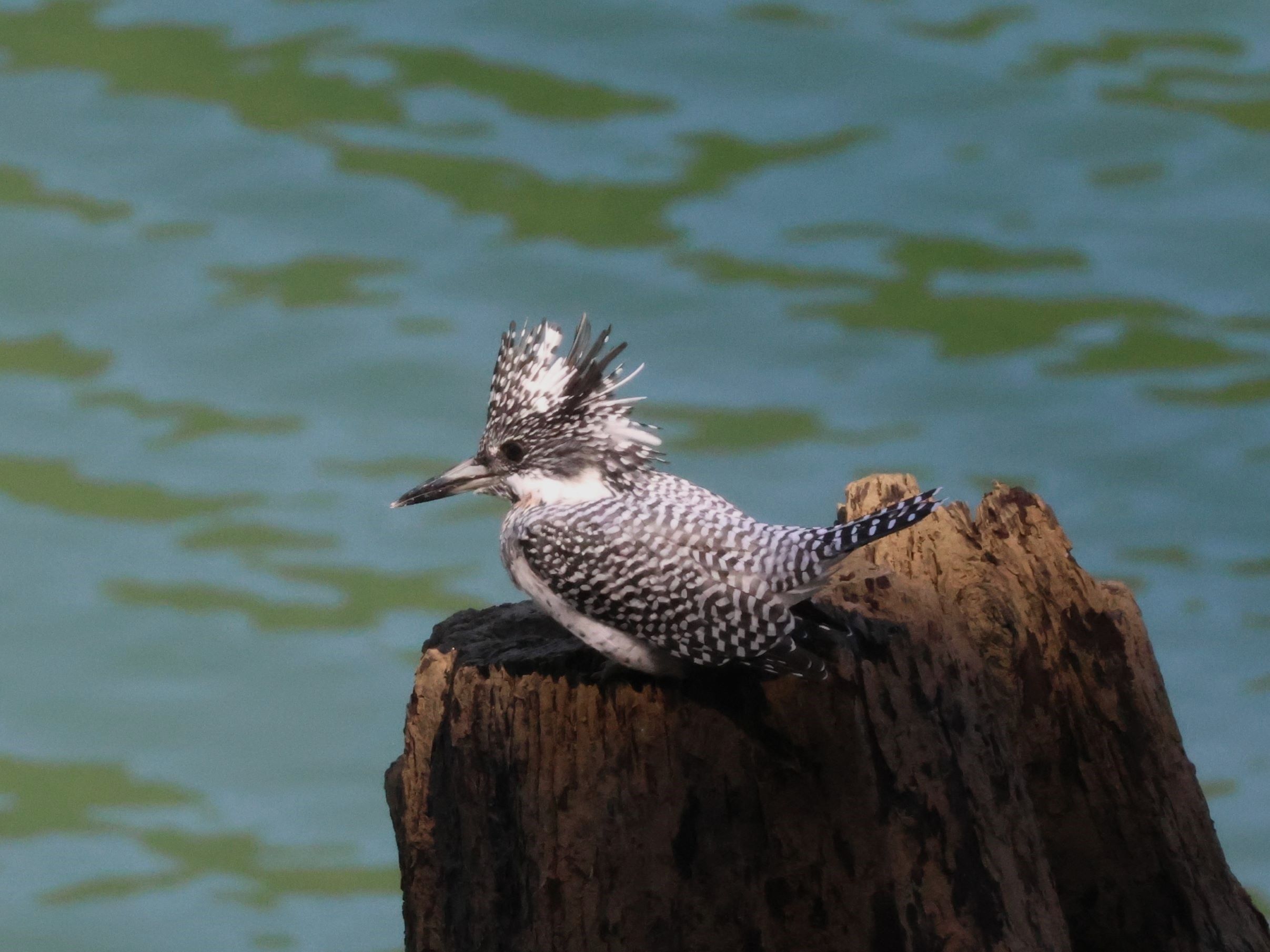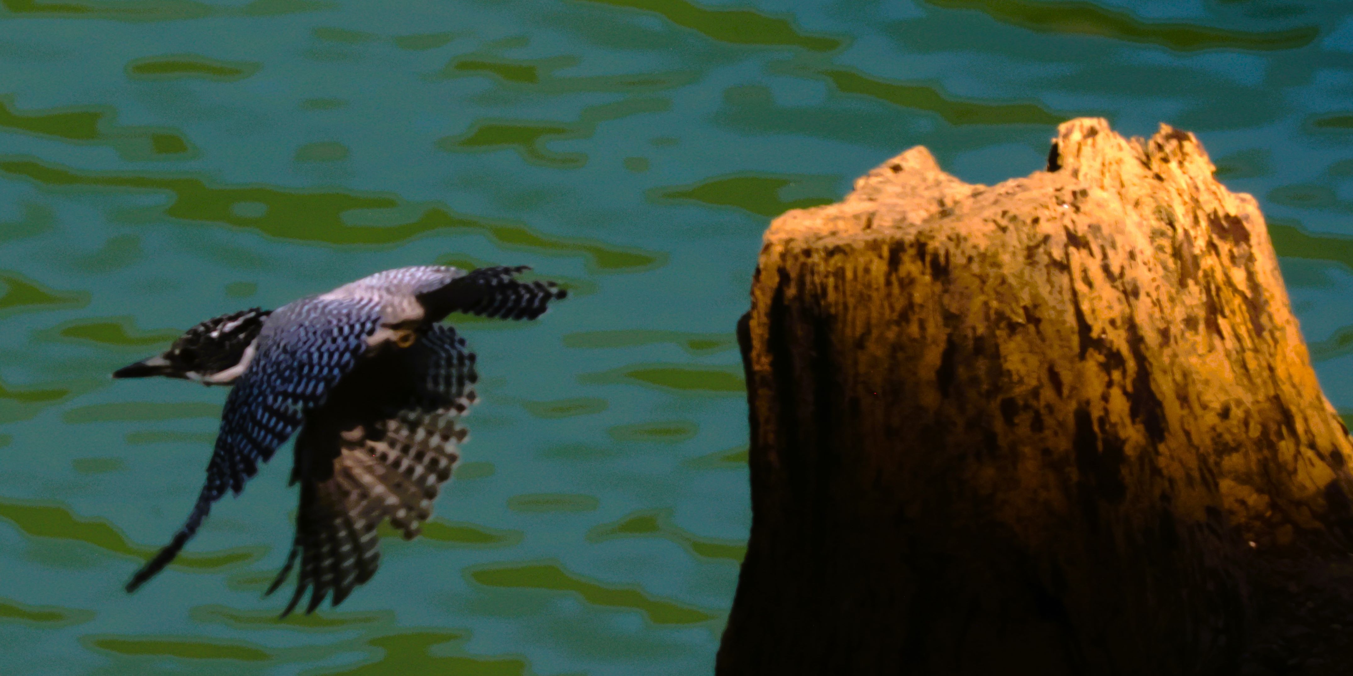 青い水面バックに、白黒のヤマセミが浮き出て流石です。