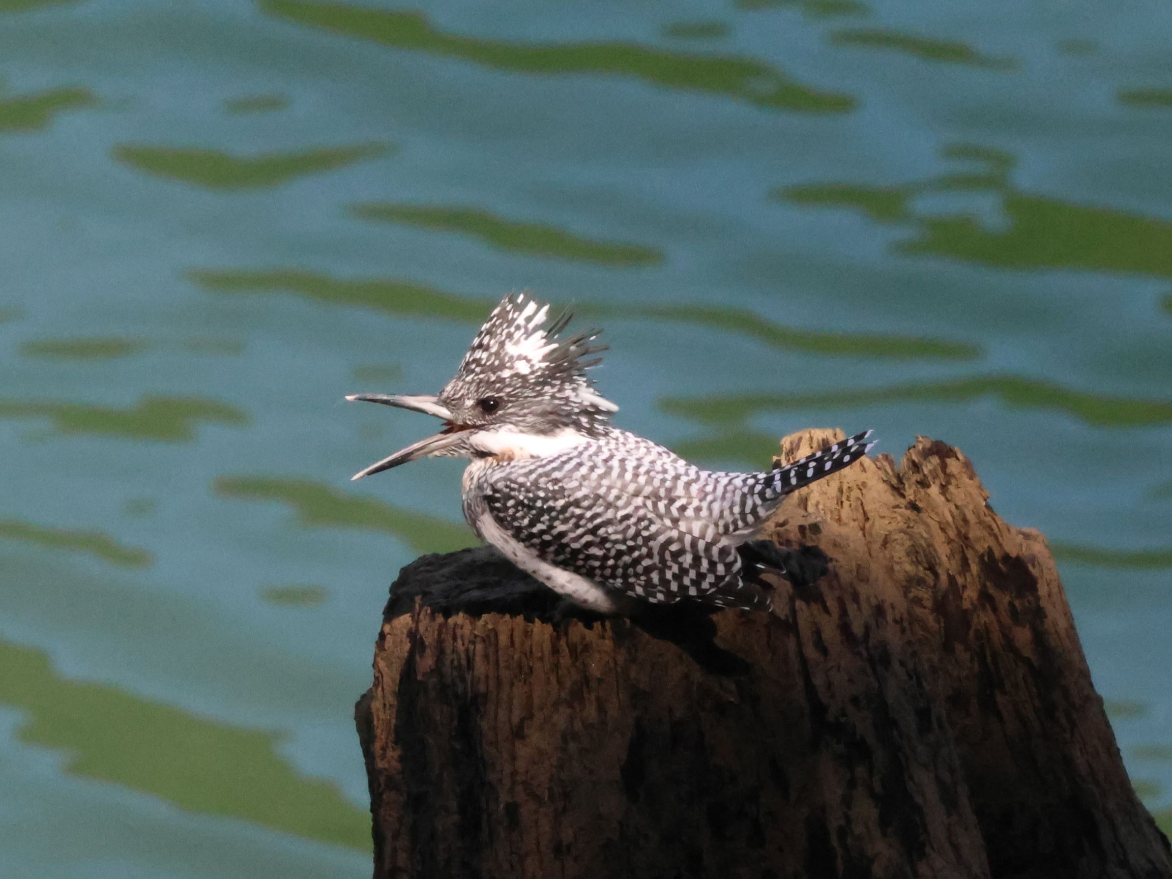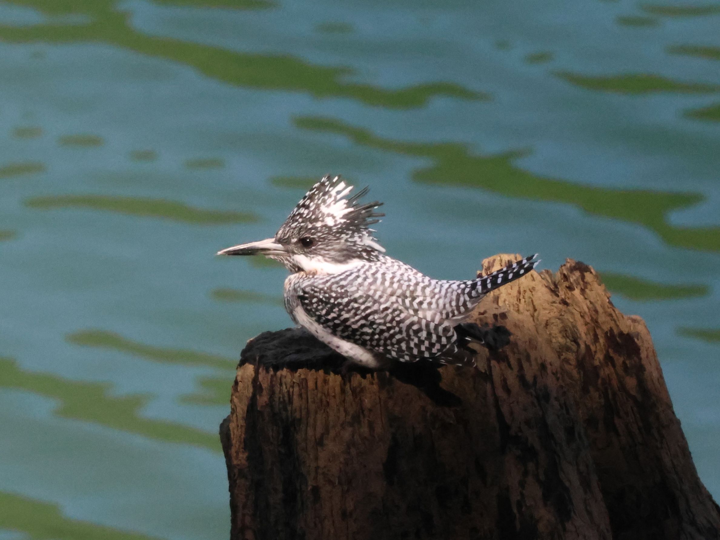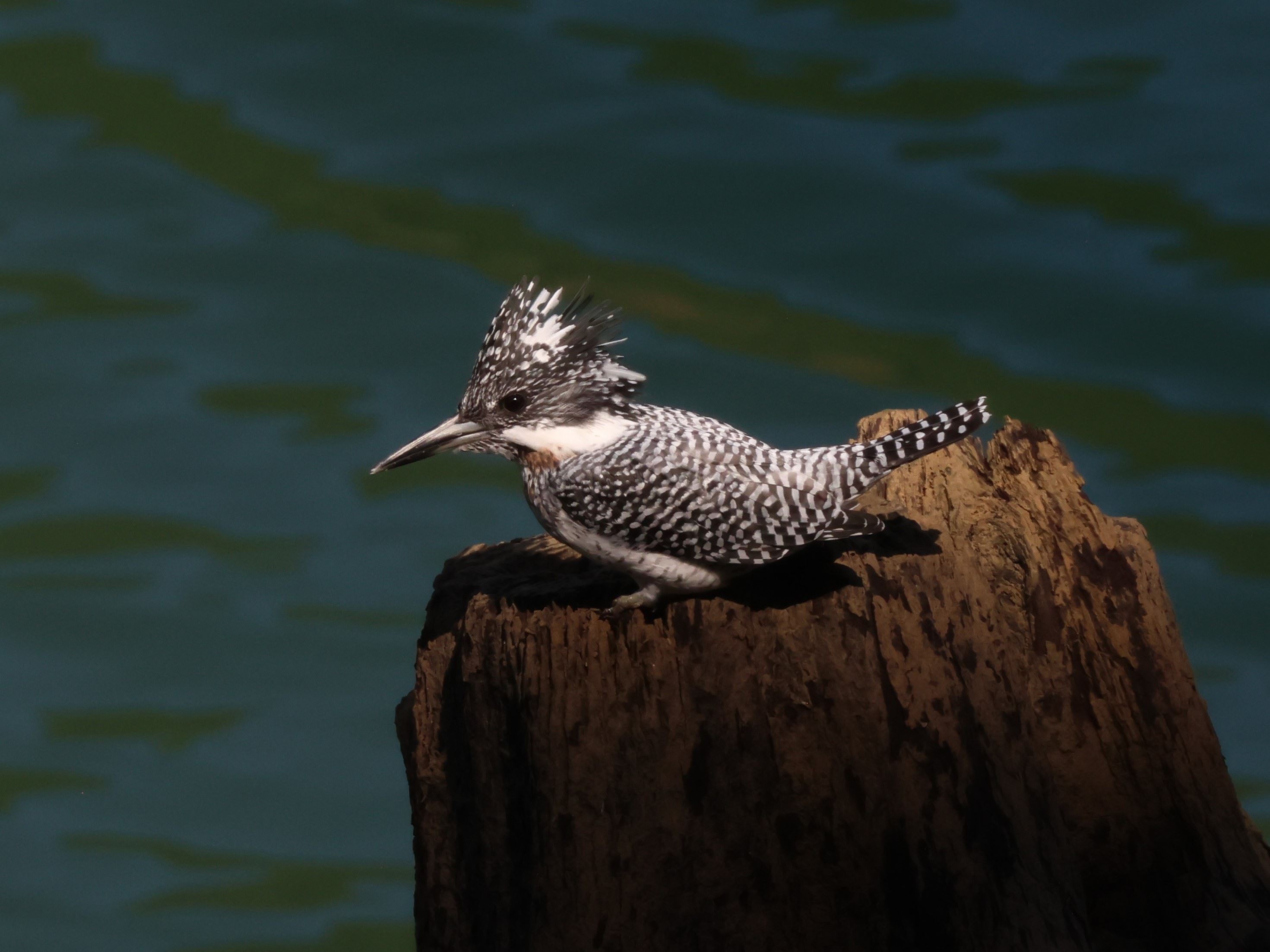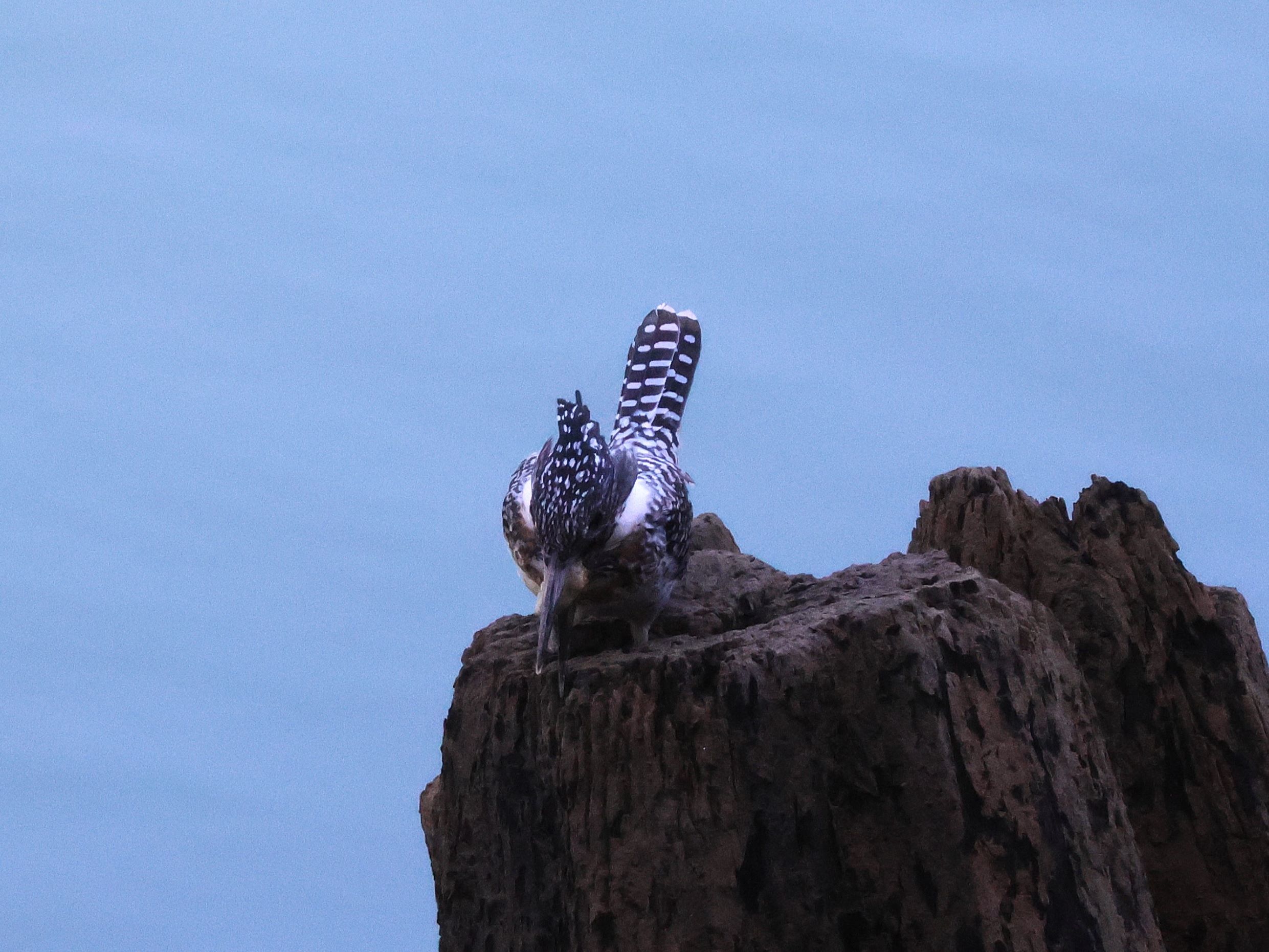 青い水面バックに、白黒のヤマセミが浮き出て流石です。