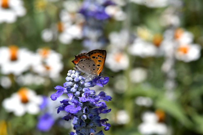 花壇に、イチモンジセセリやベニシジミ