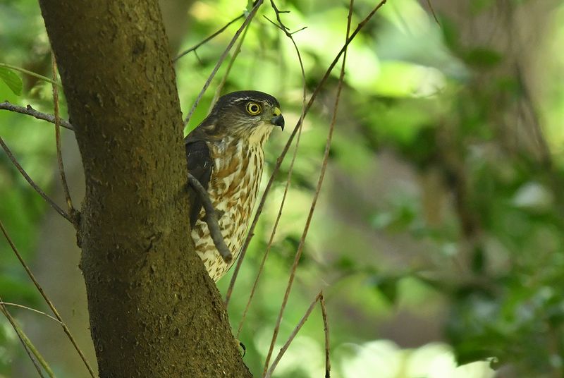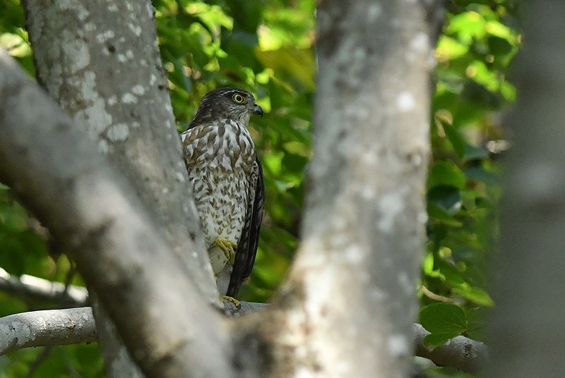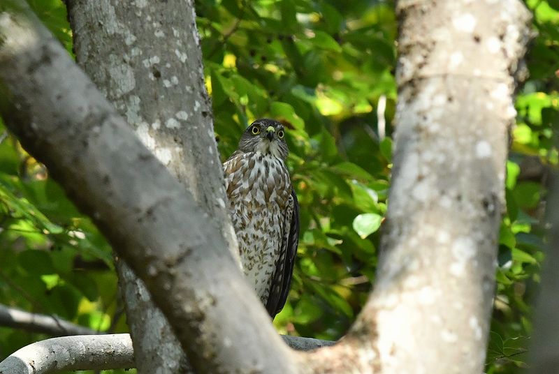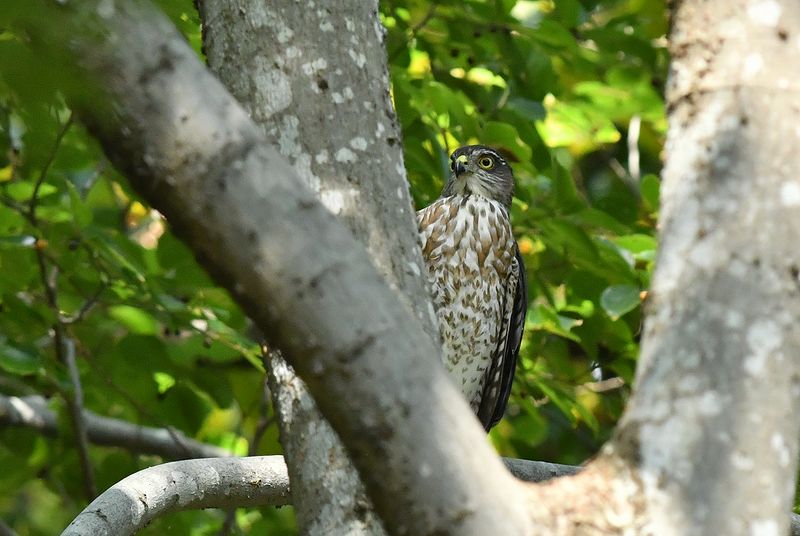 マムシ公園で巣立ったハイタカ若が、8月3日以来、池の近くに飛来しました。