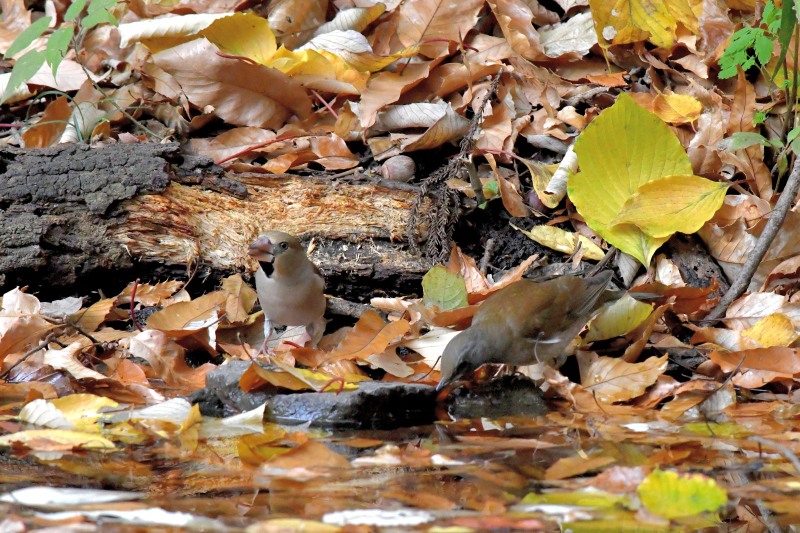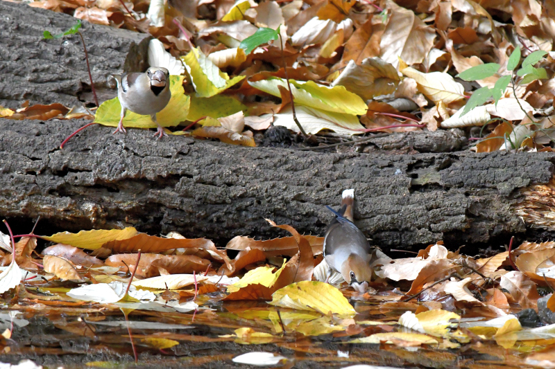 シメ作品は、池に枯葉が落ちてシメが水を飲みにくそうですね。