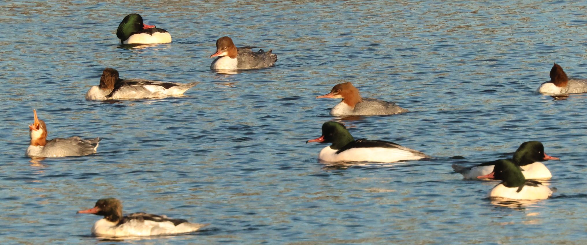 カワアイサ作品は、青空が水面に映え、水面に浮いている雄雌が賑やかそうです。