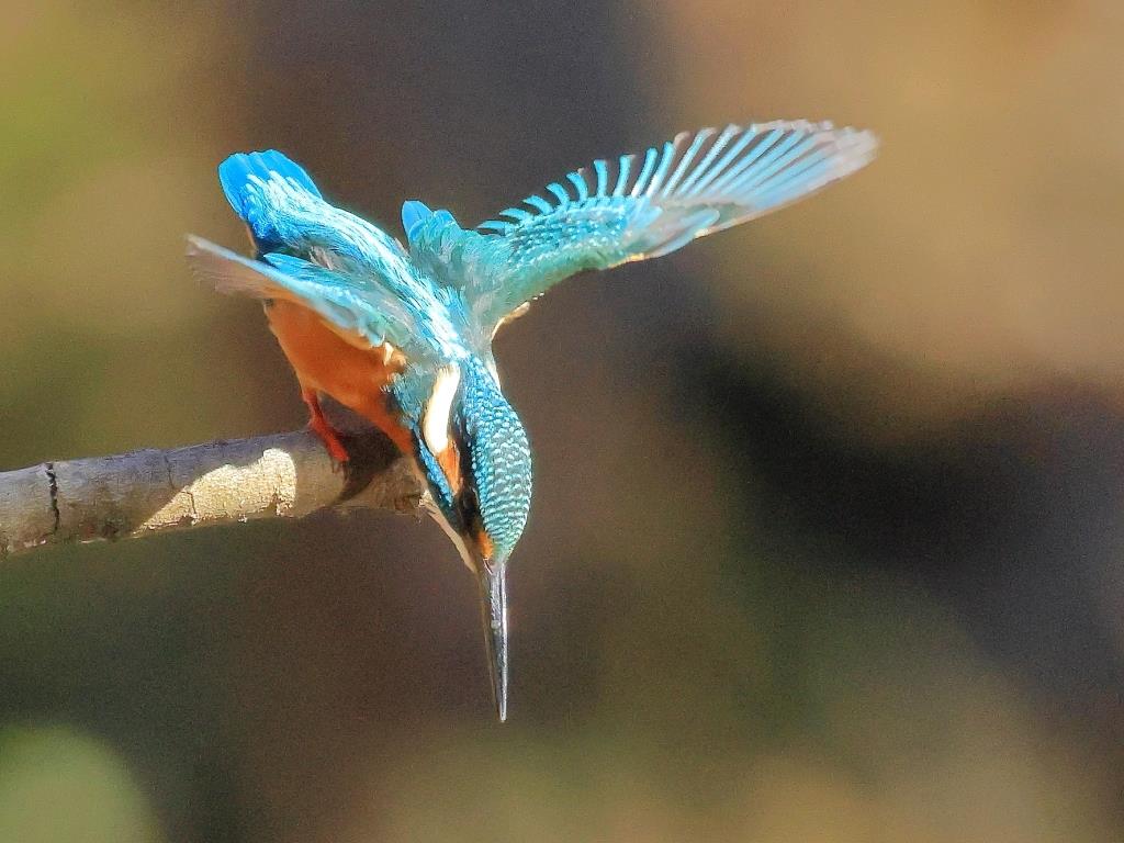 カワセミ作品は、止まり木からの飛び出し場面を撮られ、飛び込み途中の作品はバックが抜けて、羽が開いてとても綺麗で躍動感があります。