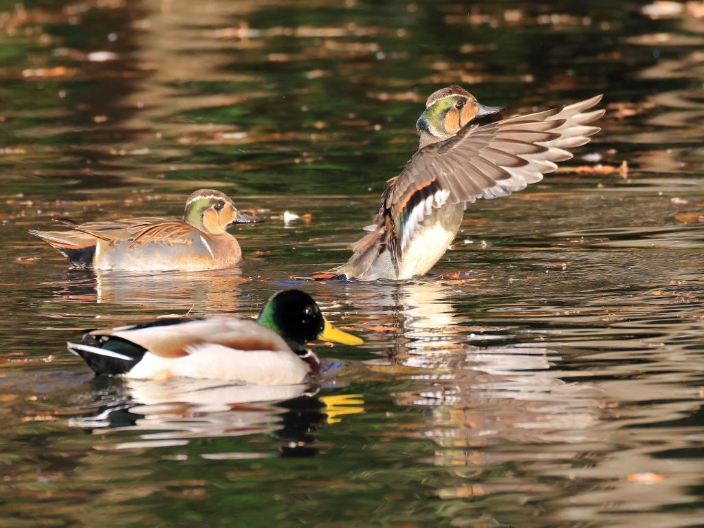 池では、マガモとトモエガモがいました。