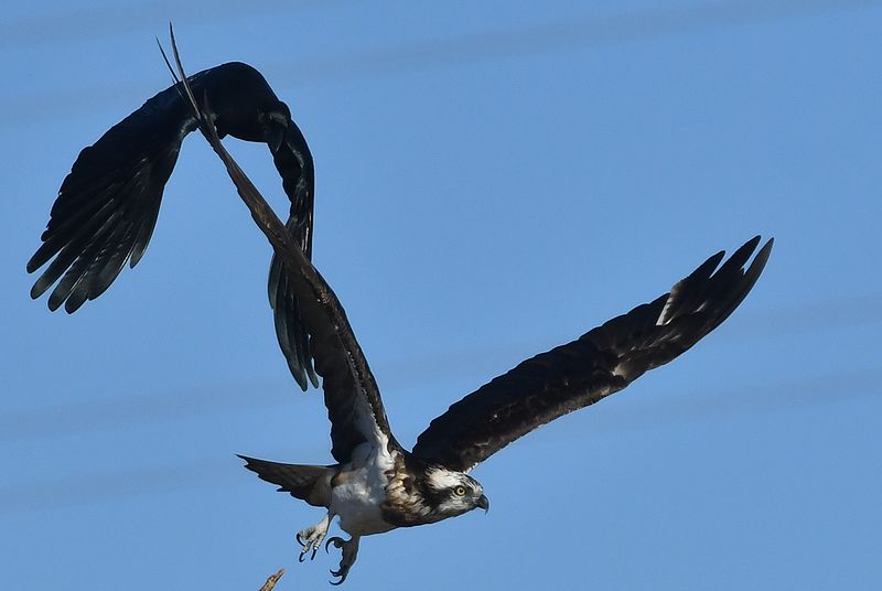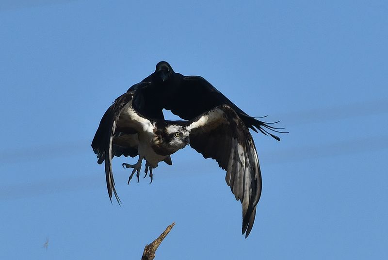 一昨日同様、今日もカラスがミサゴを追い出し、飛び出し場面が撮れました。