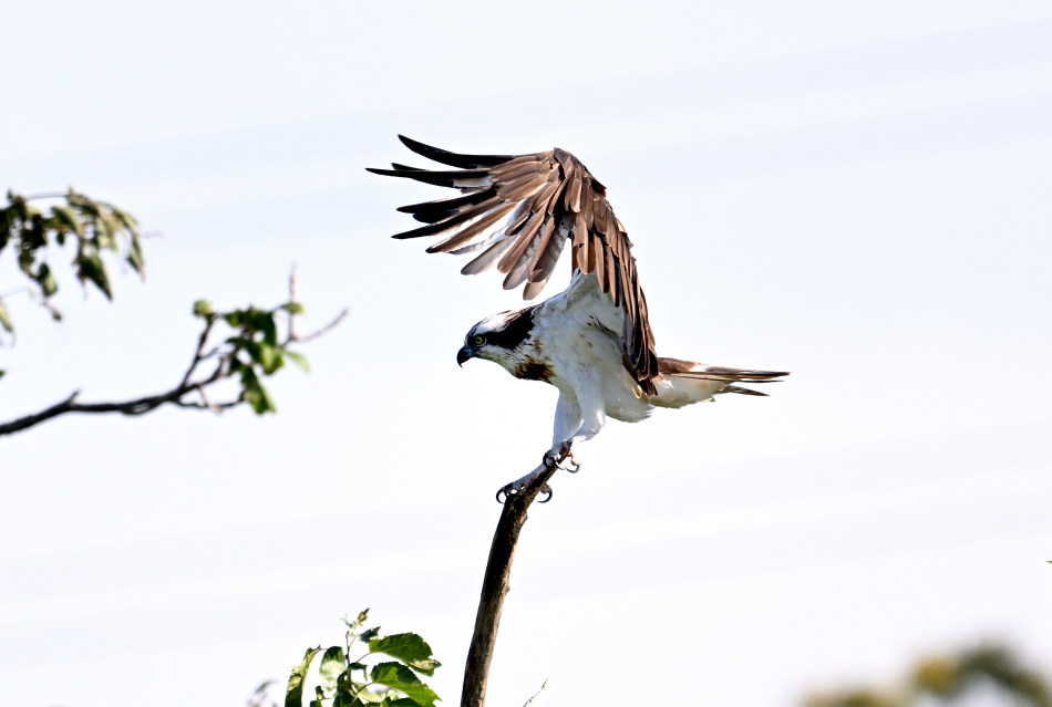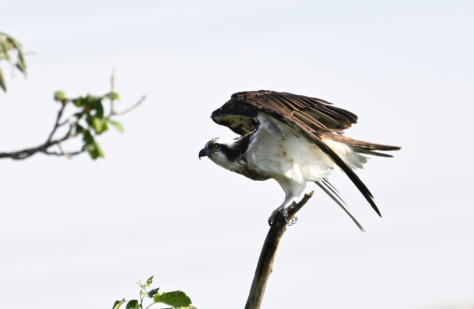 今日もミサゴ雌親が枝からの飛び出しと飛び付きを繰り返してくれましたが、相変わらず飛び出しまで約2時間位ファインダーを覗き続けるのは疲れますね。