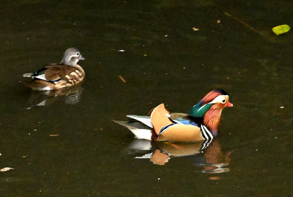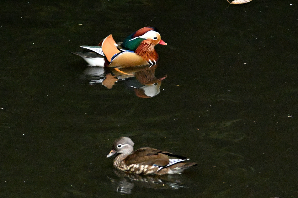 オシドリの雄雌作品は、水面が黒く潰れて水鏡になっていますね。