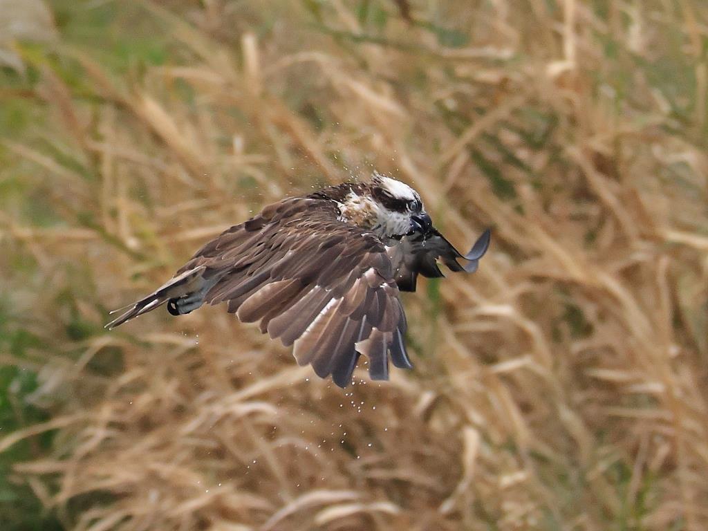 ミサゴのホバーリングから飛び込み態勢を撮り続けると、バックが空から土手の枯草に突入するとミサゴを見失いがちで撮影は難しいですね。