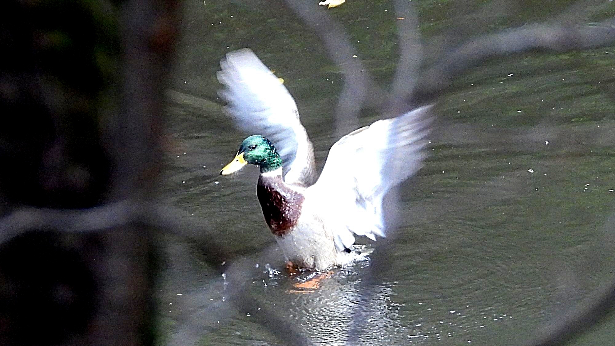 マガモ雄の羽ばたき2作品は、目にしっかり光が入って、躍動感があります。