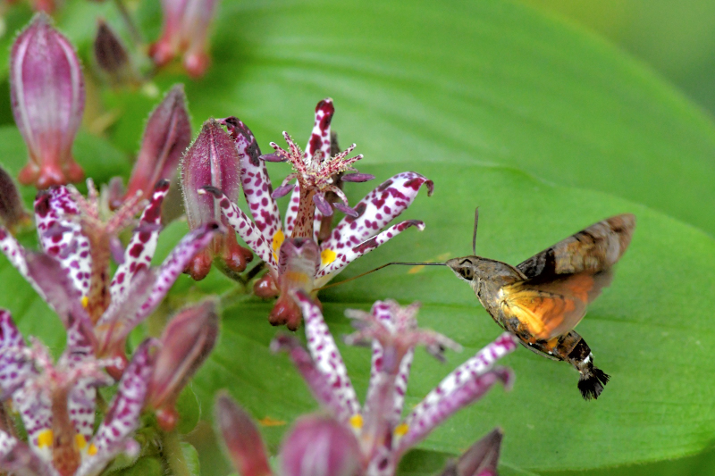 ホシホウジャク2作品は、秋の花の蜜を吸いに飛来した所を捉え、ホバーリング中の小さな虫にも拘らずしっかり撮られ、躍動感があります。