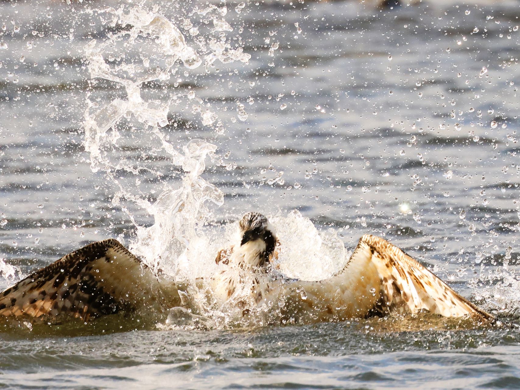 S川のミサゴの飛び込み場所が読めずに苦労されていましたが、今回は目の前の川に飛び込んでくれましたね。