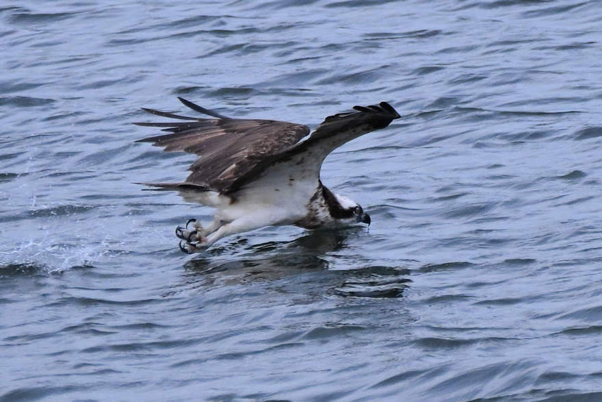 今朝のミサゴの飛び込みを回避した作品は、水面に向かって飛び込み、水面前に飛び込みを回避した場面を連続撮影され、とても鮮明に撮られ、お見事です。