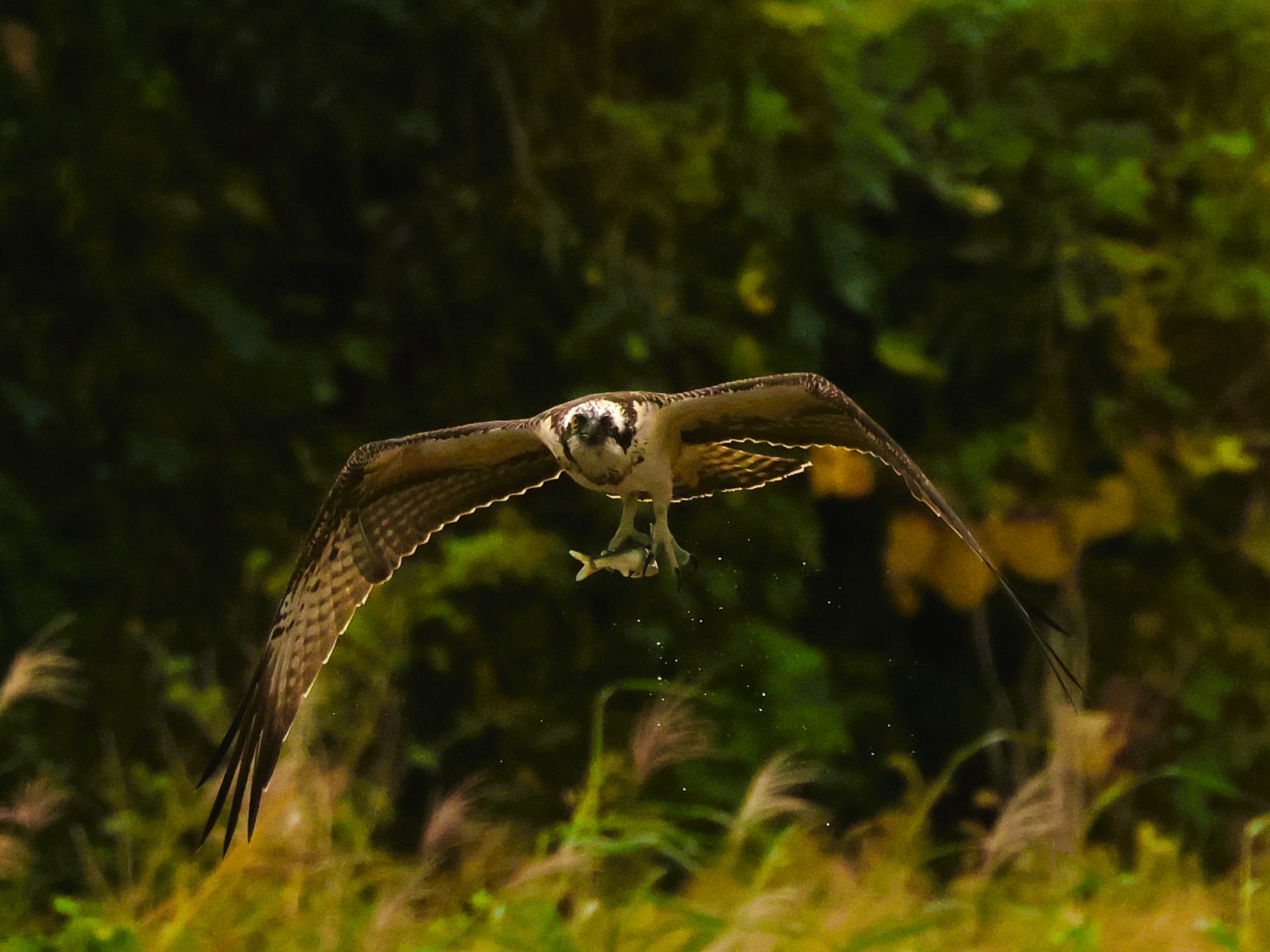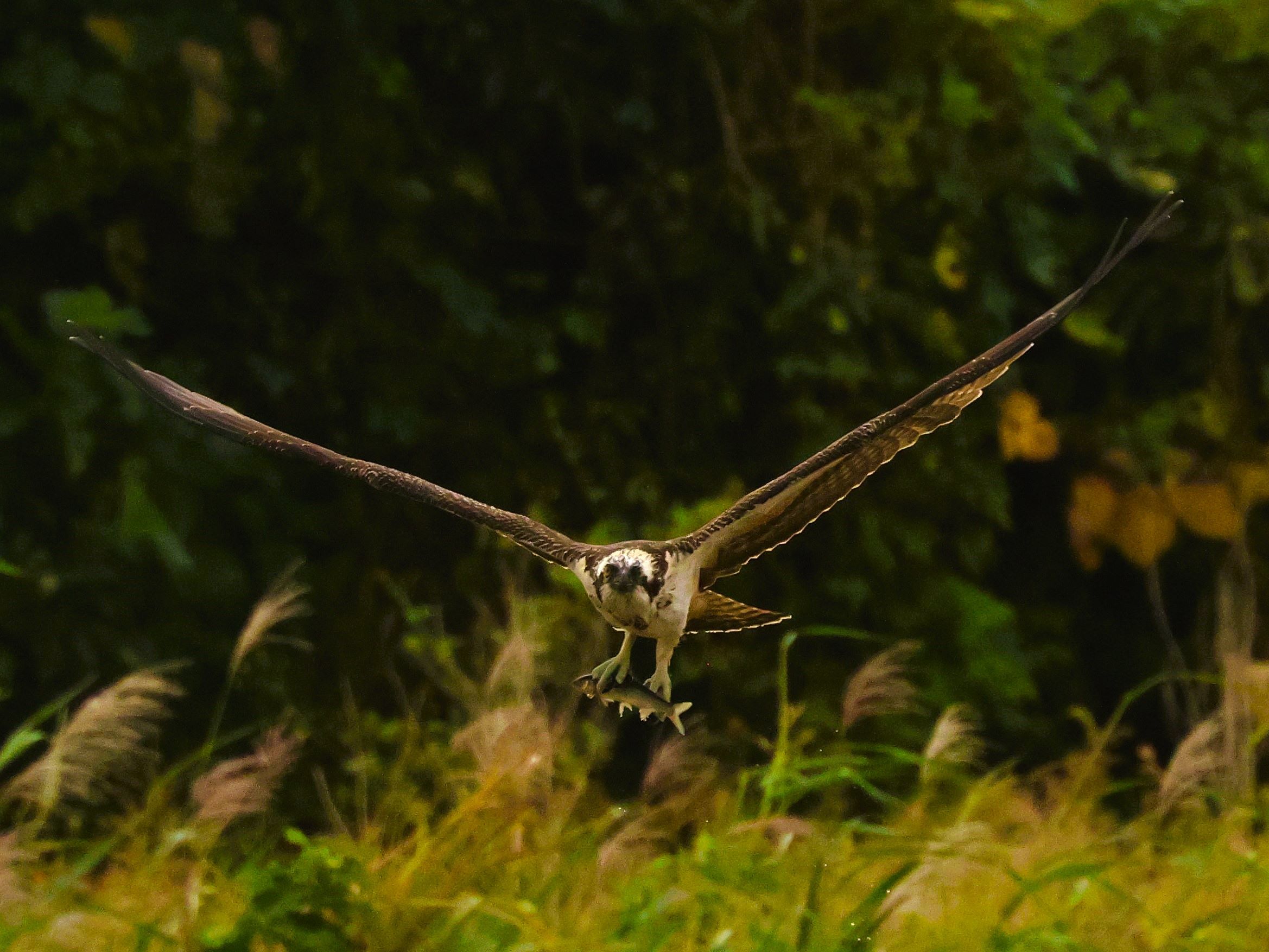 空から木々草むらに背景が変わるとミサゴが同化してしまい見失ってしまいます。動体視力がかなり低下しております。