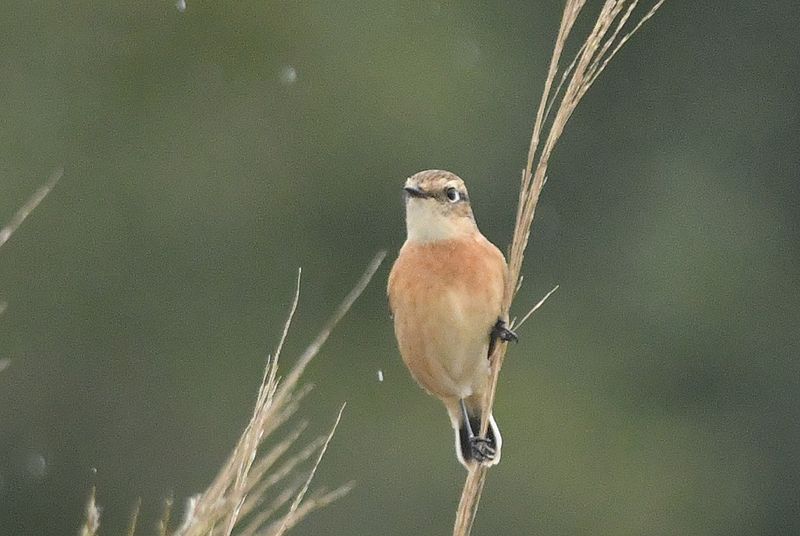 午後は、雨が降ったり止んだりの繰り返しで、雨中撮影を強いられましたがノビタキは4羽居ました。