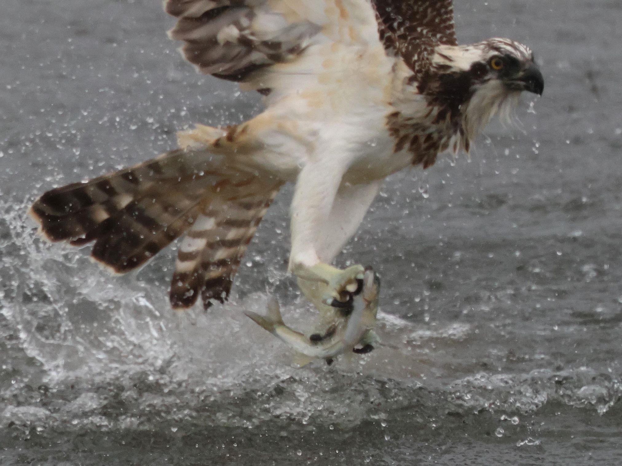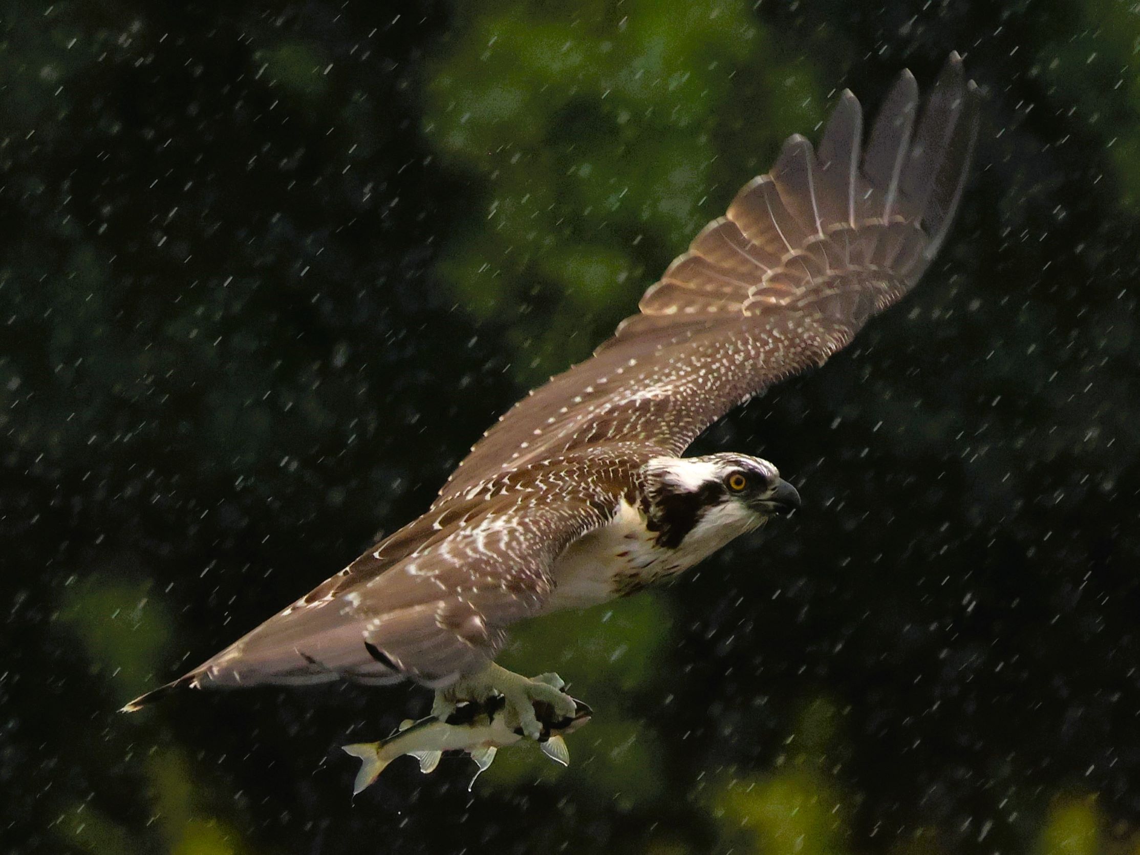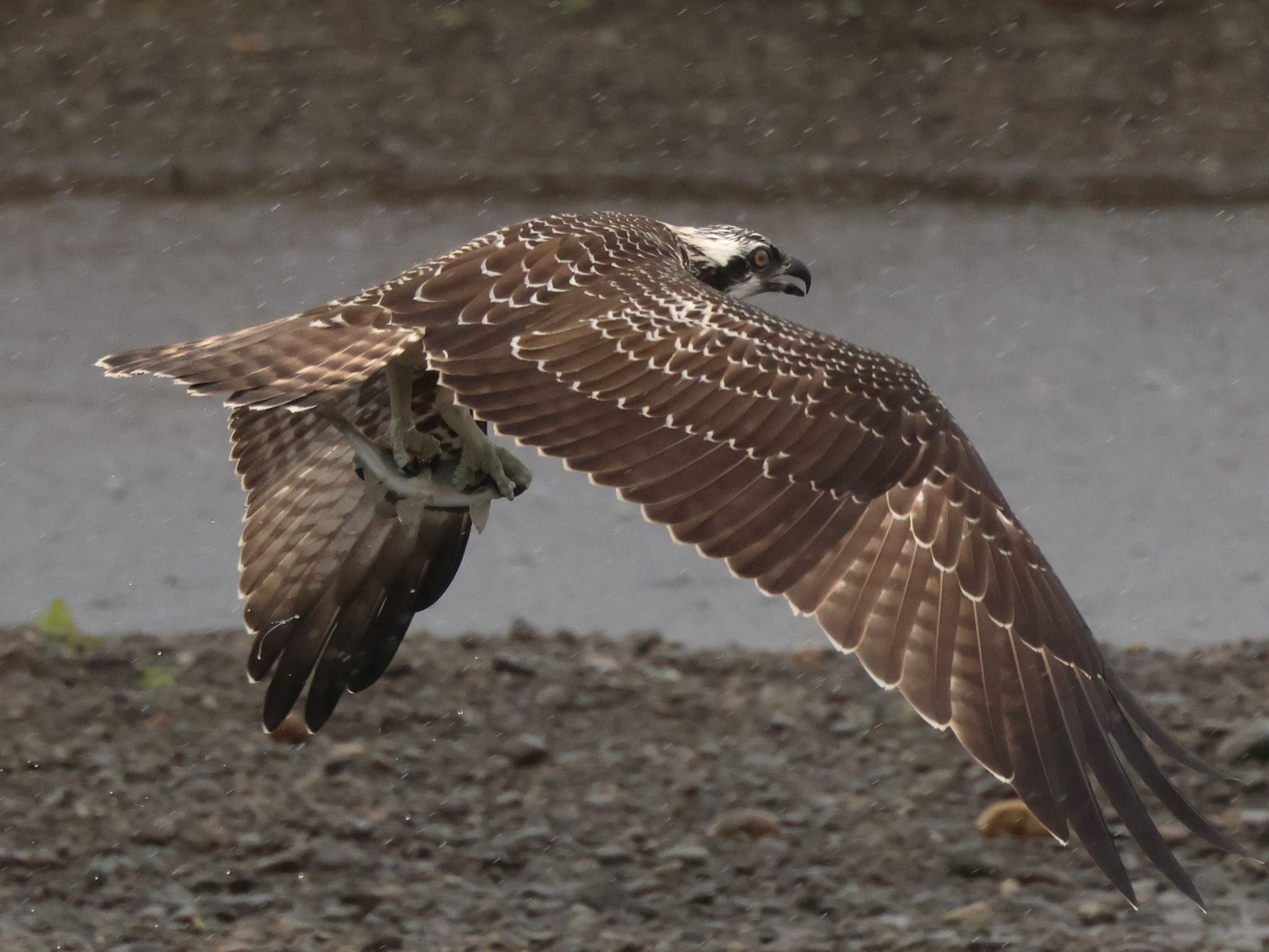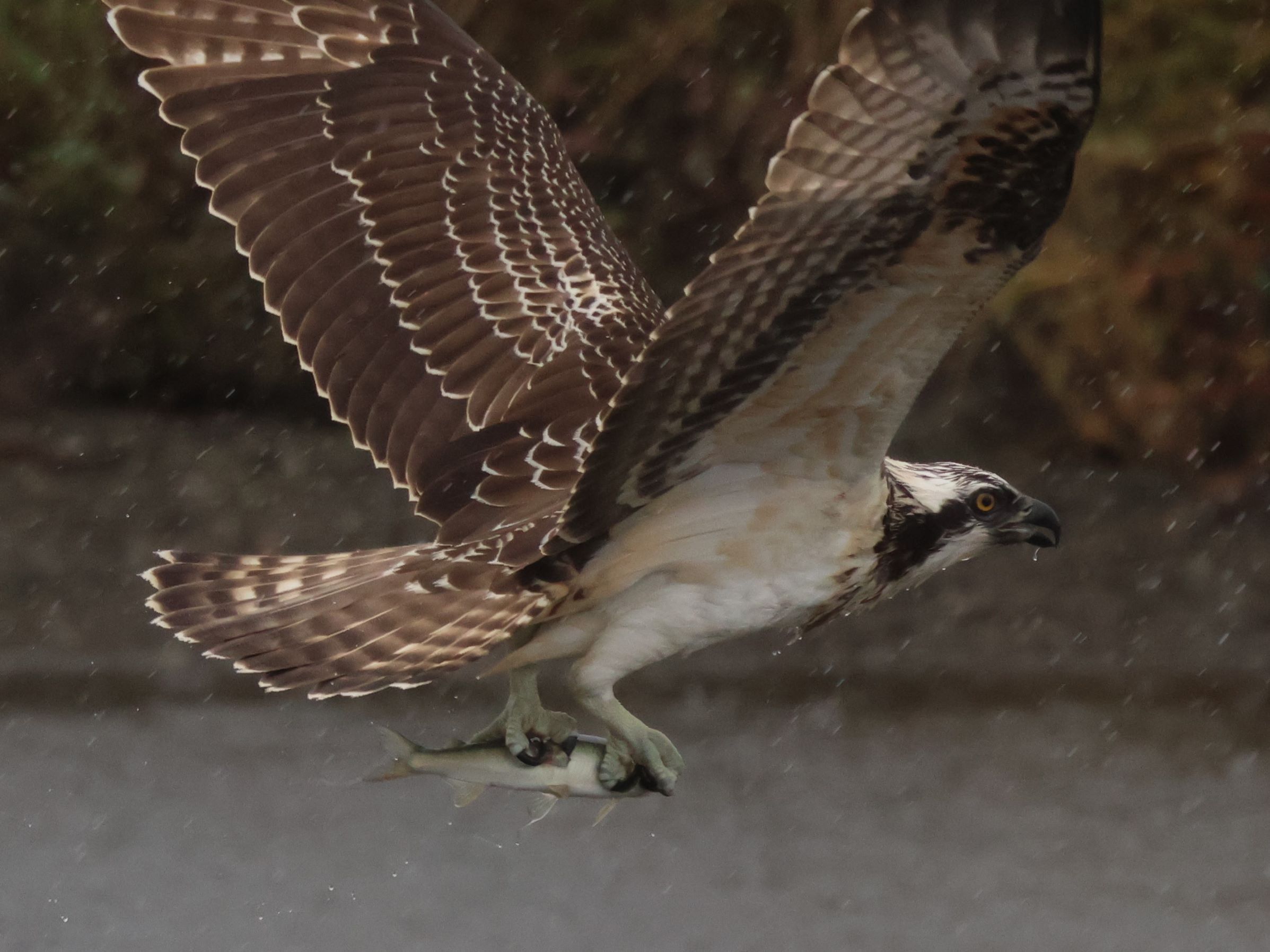 鮎を捕獲し上空を飛翔してくれましたが雨が降っておりレンズに雨がまともに掛かるので気を遣いながらの撮影でした。(昨日投稿の続きです)