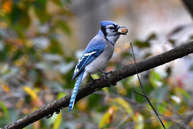 Blue Jay(アオカケス30cm)作品は、最初の2作品が雄でしょうか、枝に止まった作品は、ドングリを咥えた所を捉え、鮮やかな青い鳥だけに綺麗な鳥です。