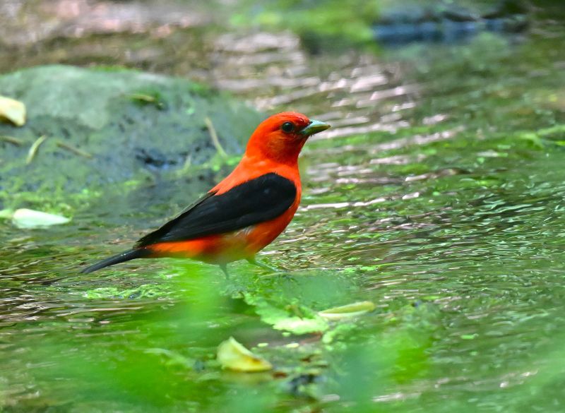 Scarlet Tanage作品は、水場に現れた所を捉え、目にしっかり光が入って、鮮やかな赤と黒の2トーンカラーで魅力ある鳥ですね。