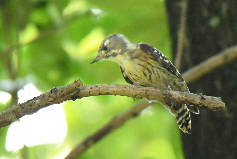 コゲラの最初の作品は、幹に止まった所を捉え、バックが抜けて鳥が引き立っています。