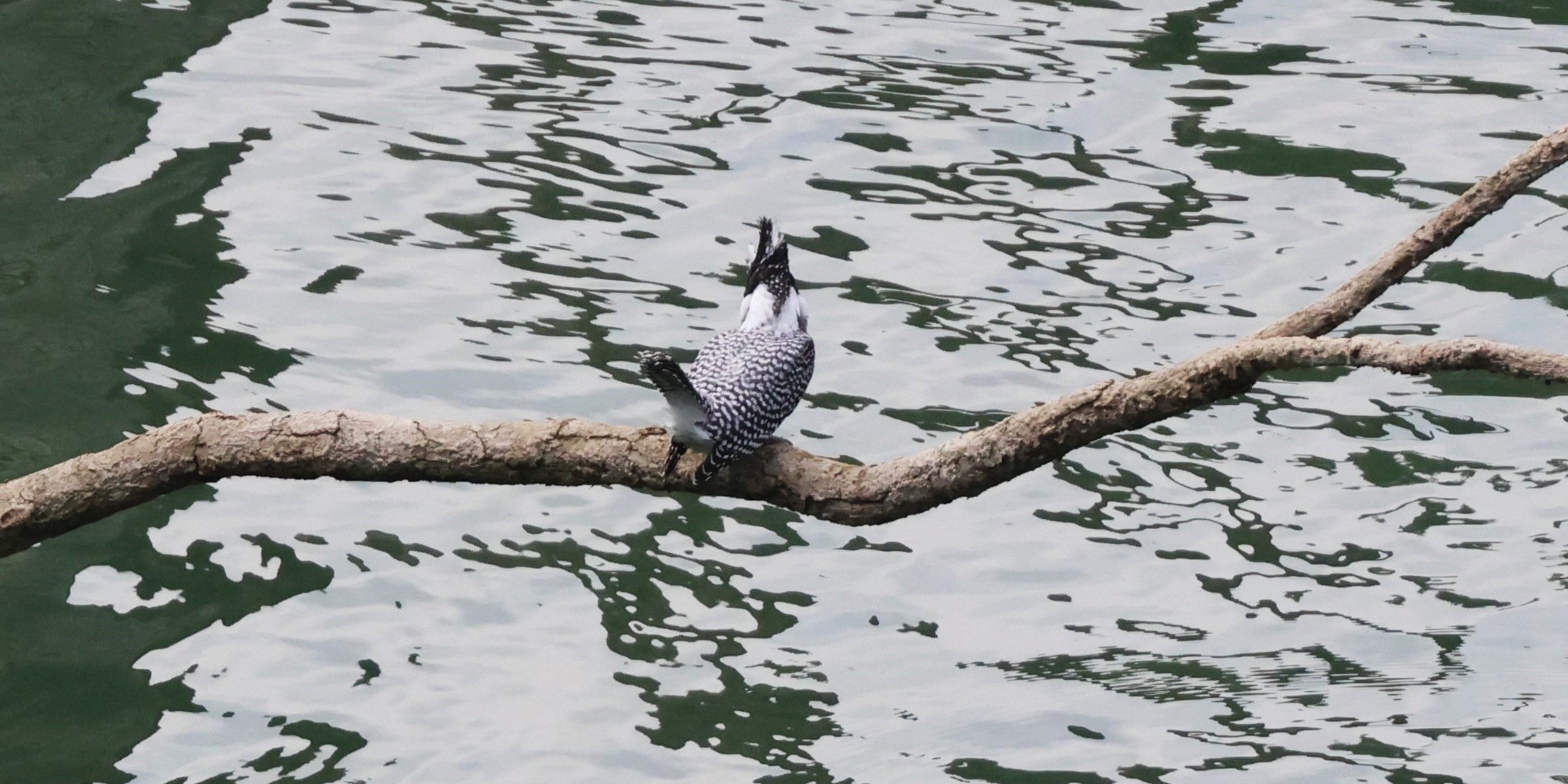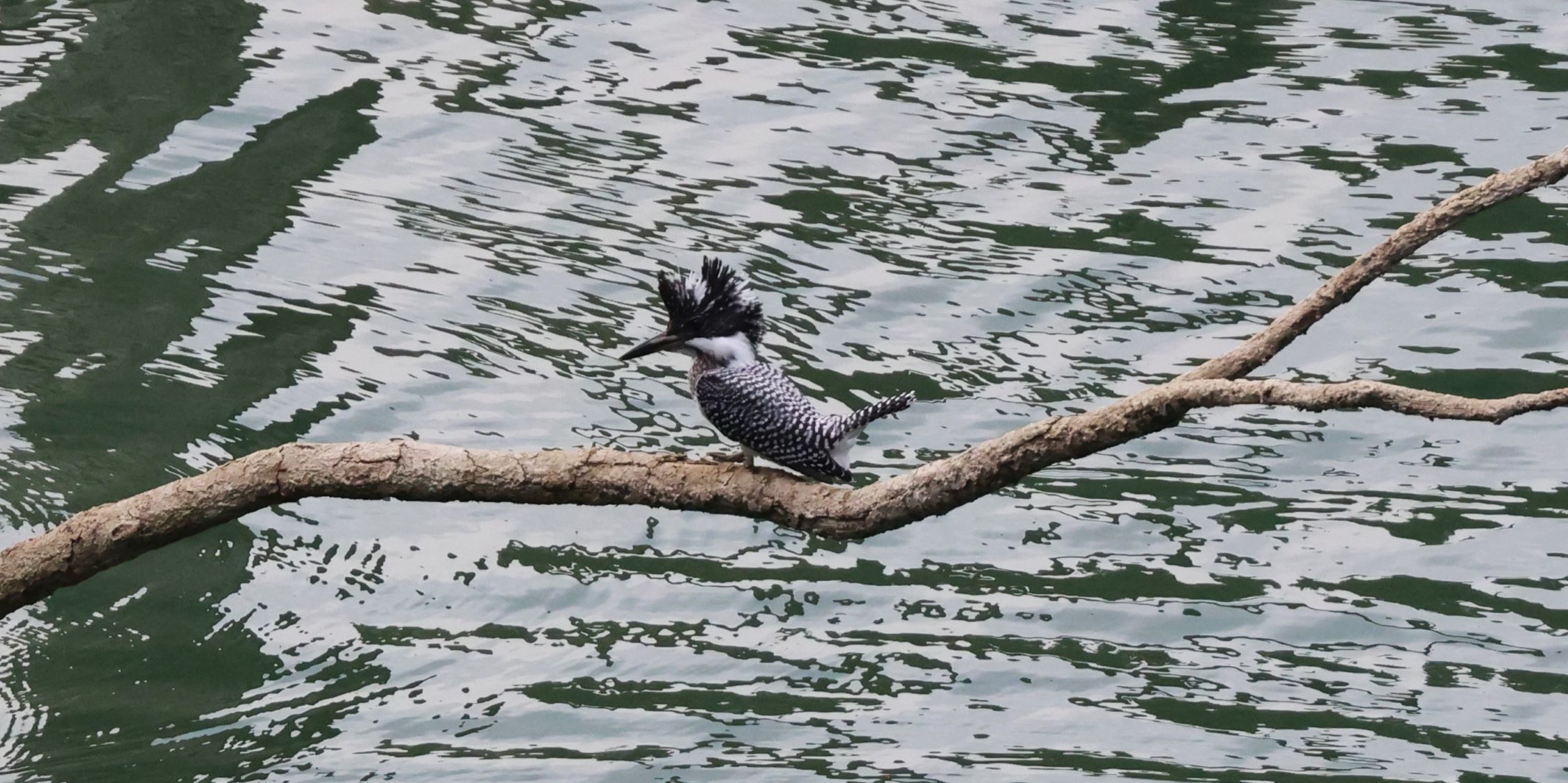 ダムの水位が下がったのでヤマセミの留まる背景がいまいちです。