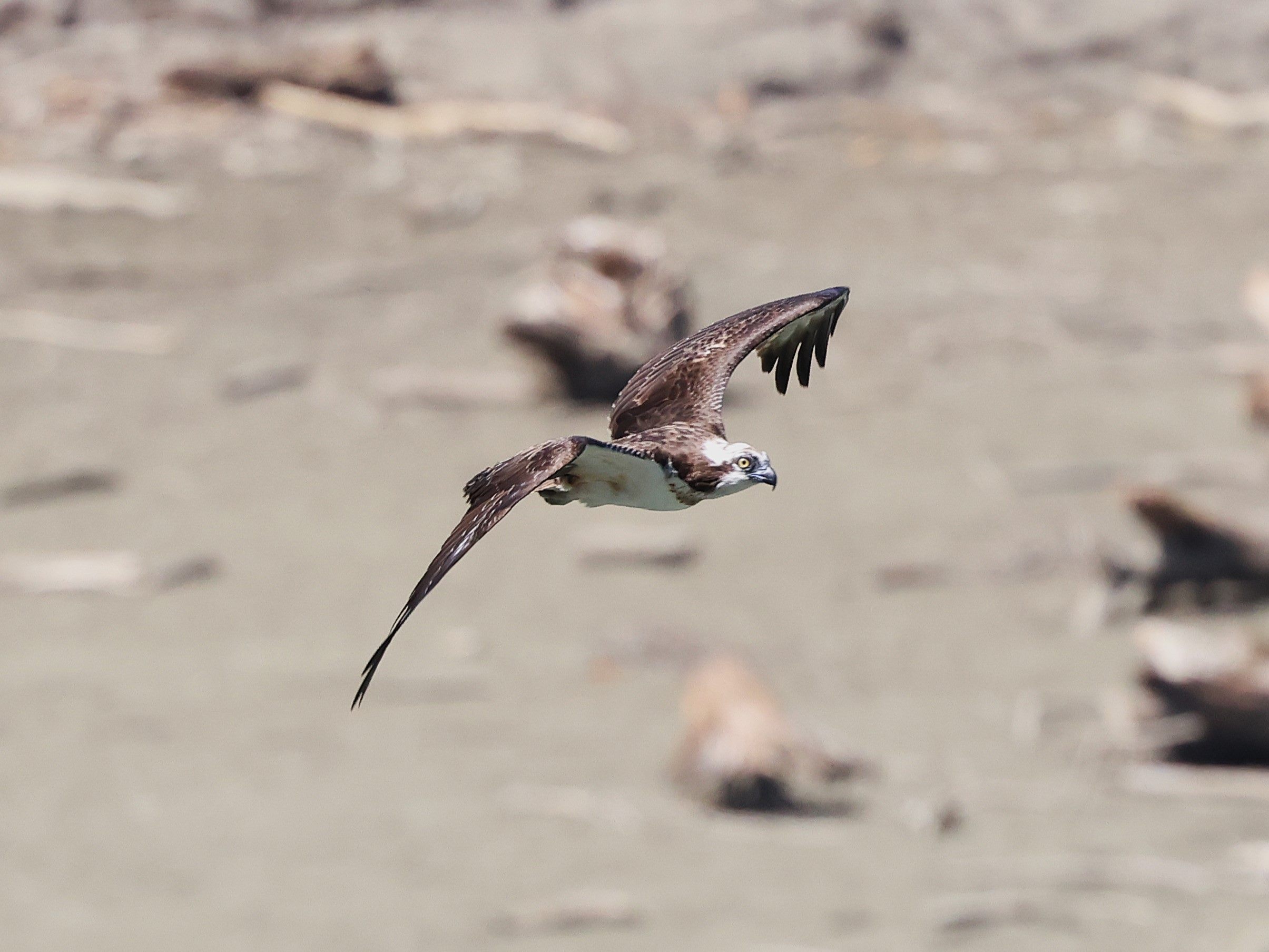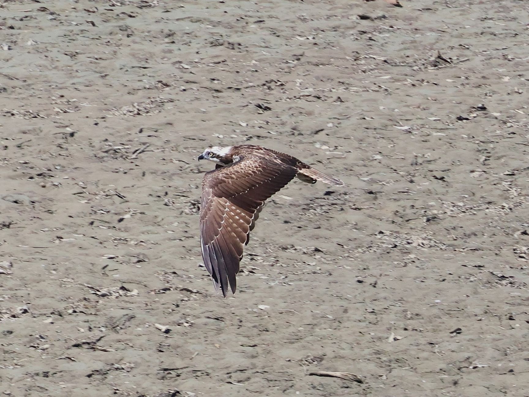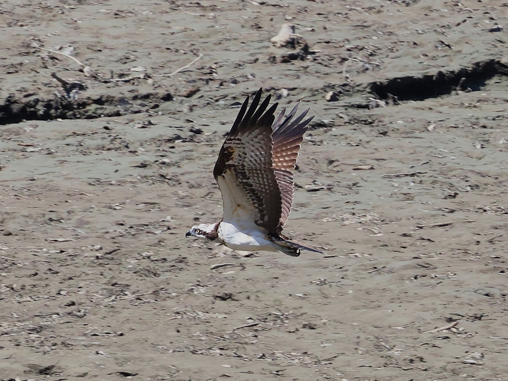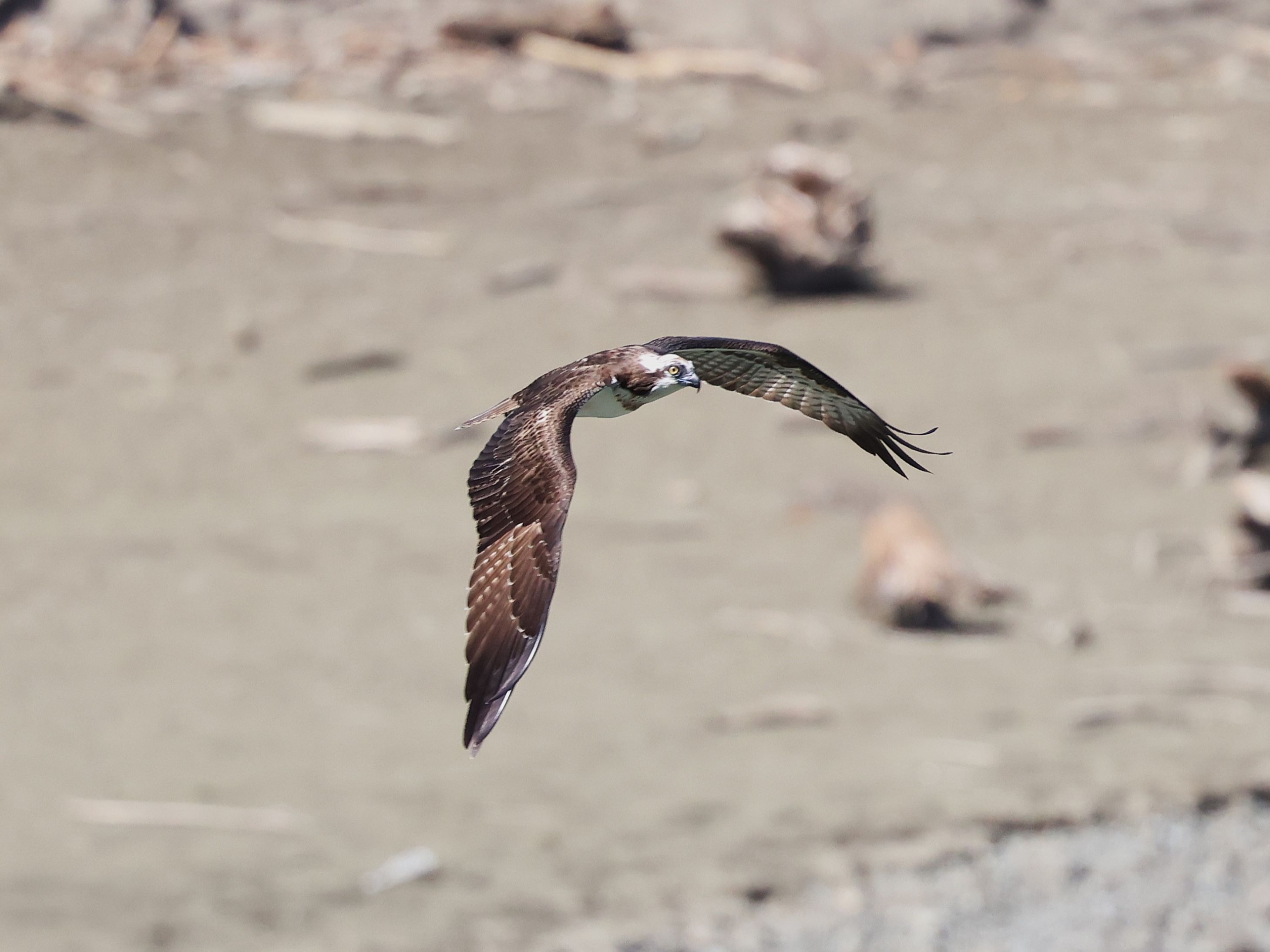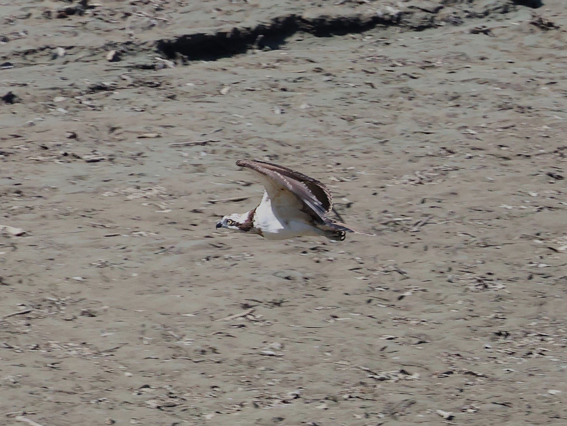 この日もミサゴが飛来し水位が下がって出来た水溜りの魚を狙っているのか眼下を飛翔していました。