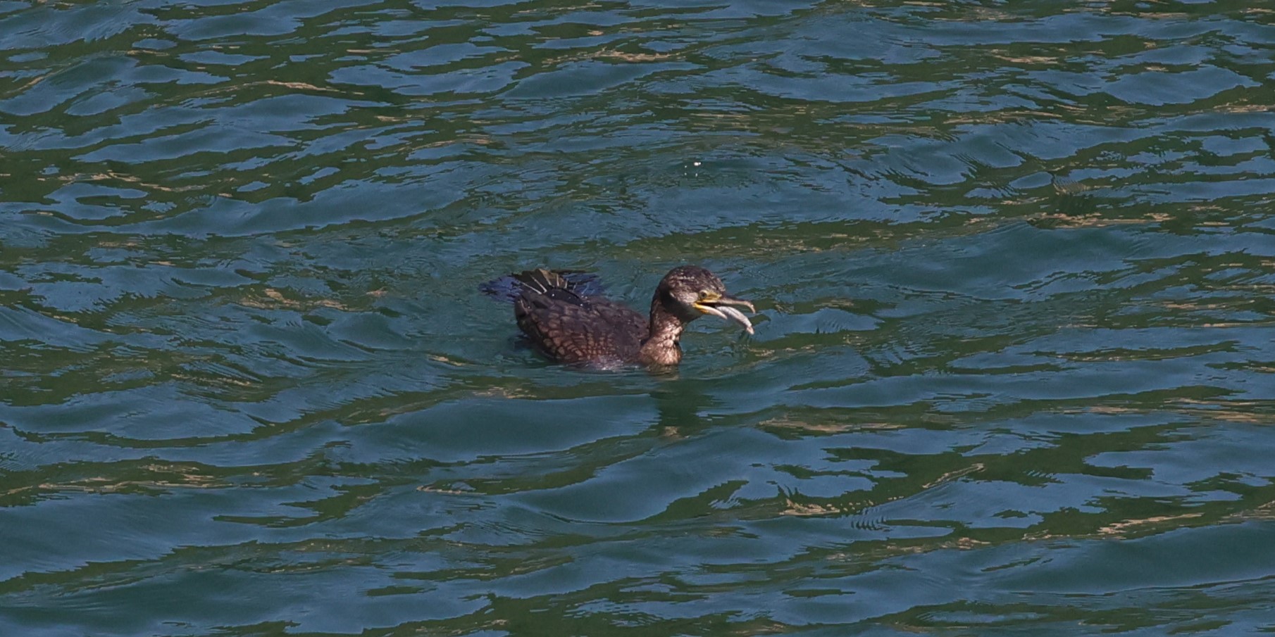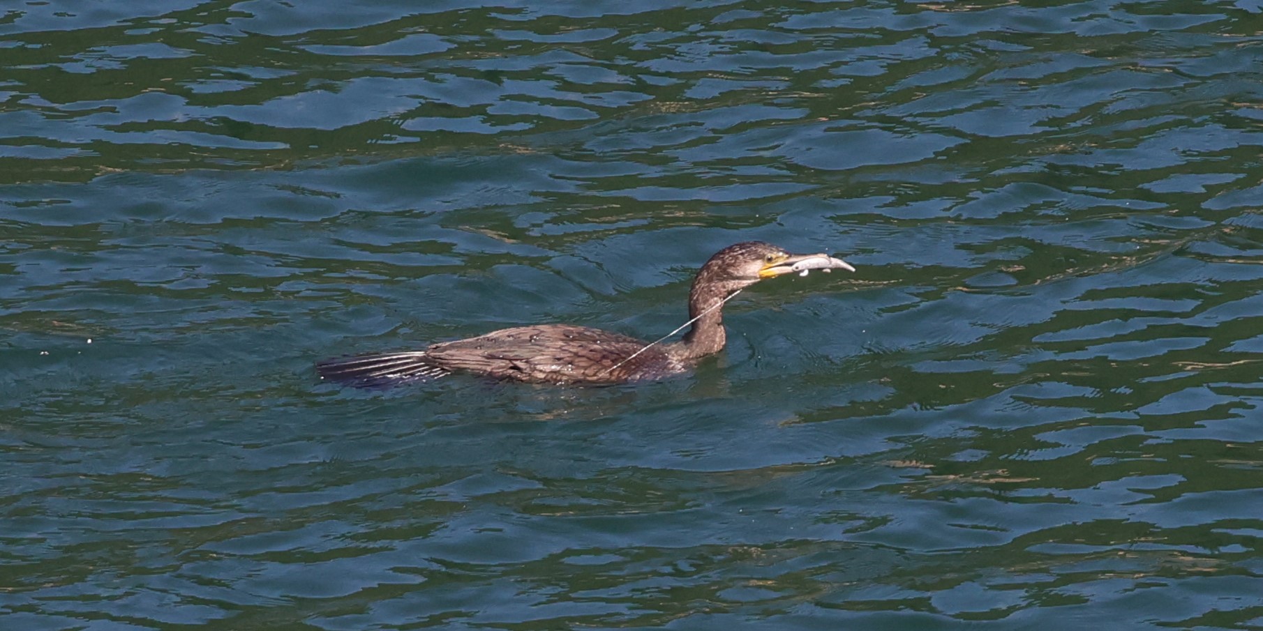 カワウが釣り人が残したルアーを飲み込みました、可哀想にどうなることやら・・・・・・!