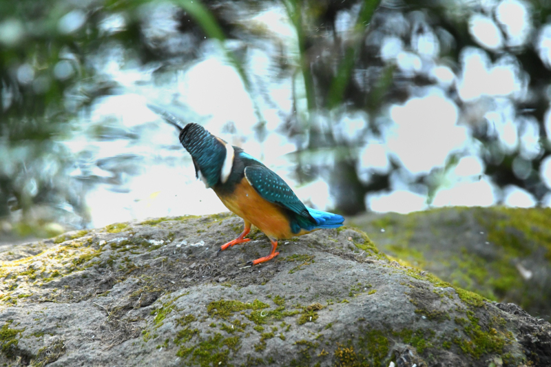 枝から飛び出して水面に飛び込み、飛び出し場面を連続撮影され、湖面バックに羽の色々な動きを撮られ見応えがあります。