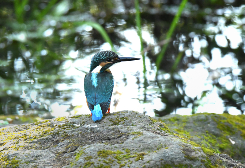 岩場に飛来した各作品は、色々な場面を撮られ、目に光がしっかり入って、見返りの後ろ姿の作品は、メタリックな青が綺麗で流石です。