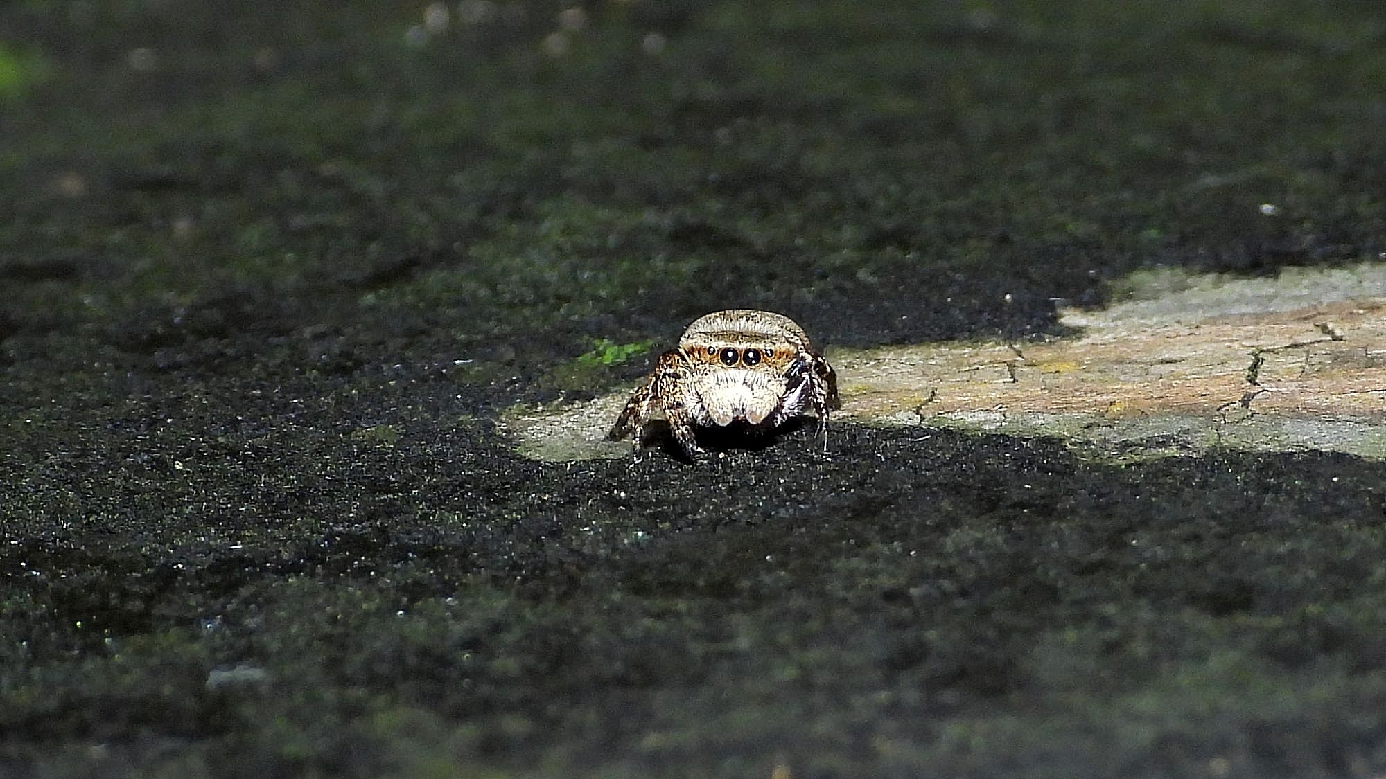 カラスハエトリ作品は、正面顔を撮られ、目に光が入ってとても可愛いのに左前足が欠損して痛ましいです。