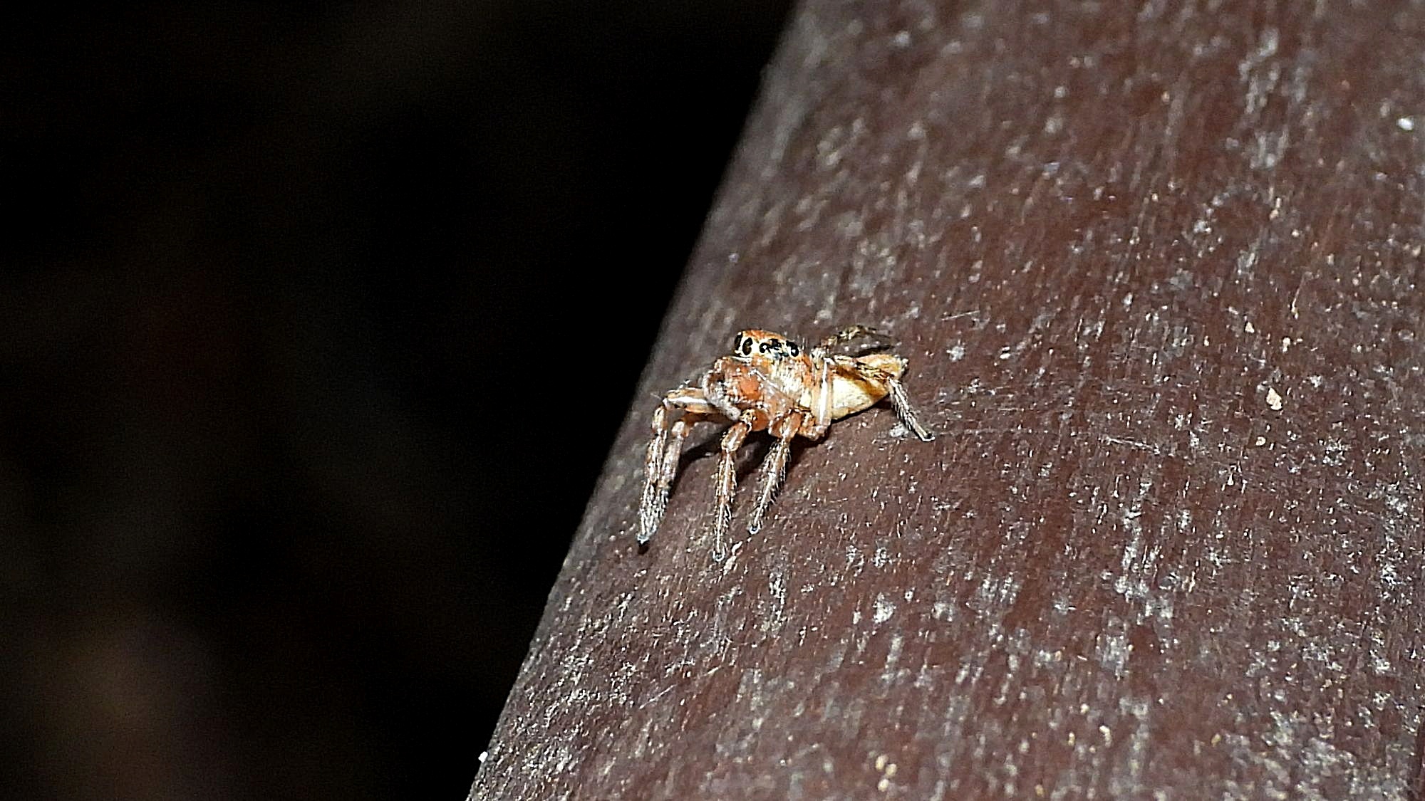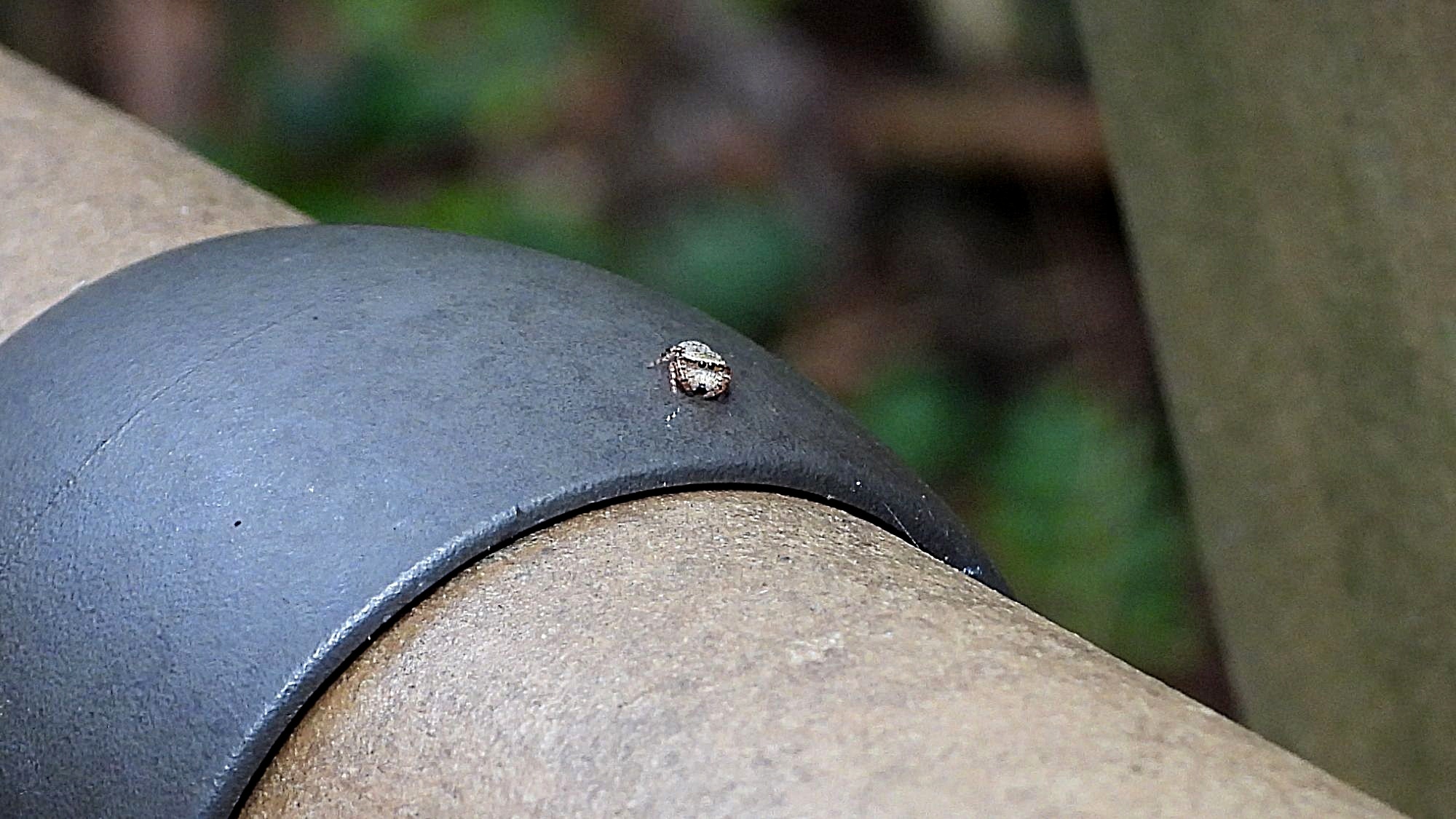 昨日と同じ場所にいたカラスハエトリ(左前足が欠損しているようです)