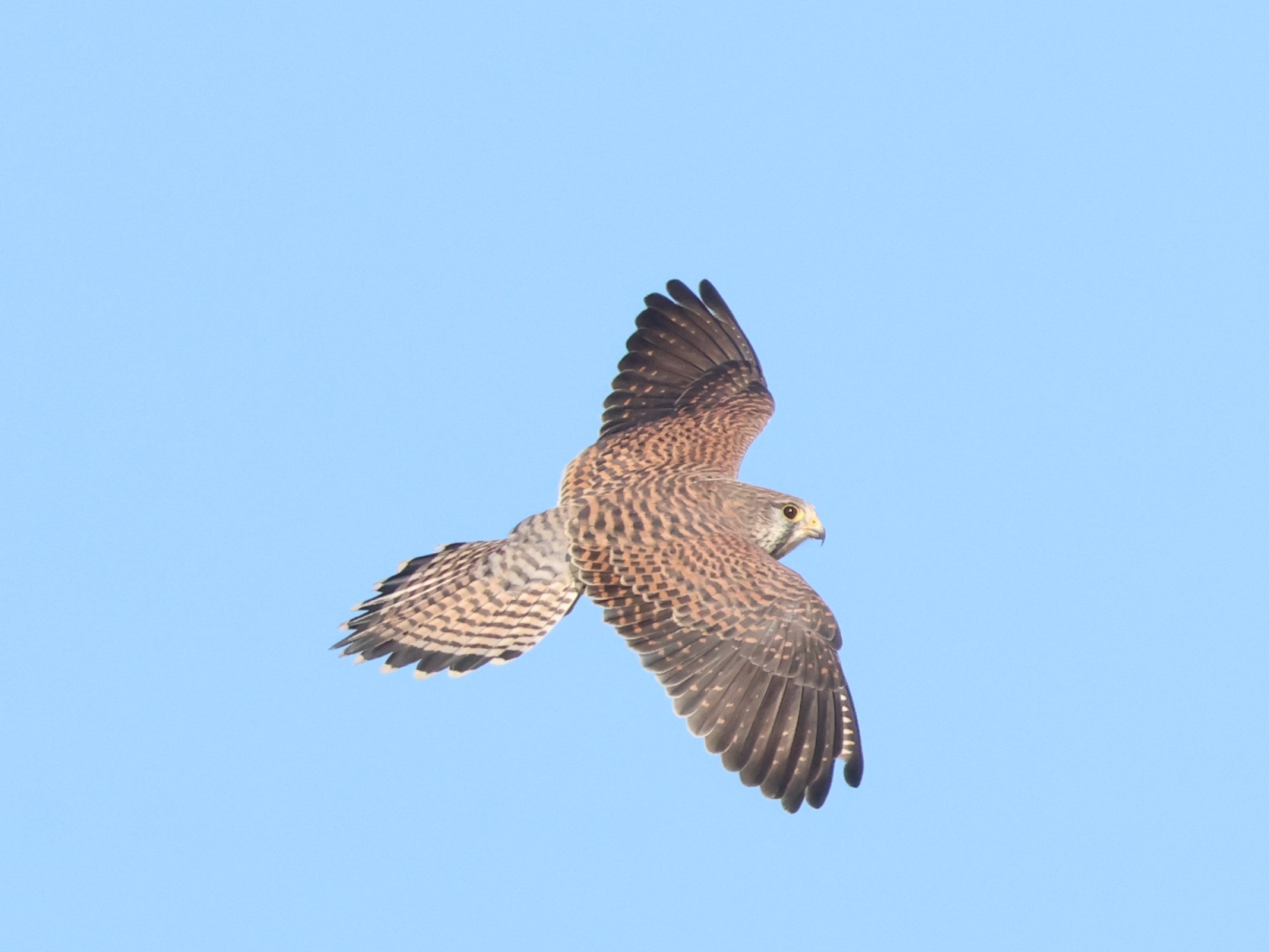 チョウゲンボウ作品は、青空バックに飛翔している場面を捉え、目に光がしっかり入って、開いた羽が綺麗で躍動感があります。
