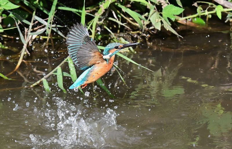 水面からの飛び出し作品は、水飛沫が上がって迫力があって、目にしっかり光が入って開いた羽が綺麗で躍動感があります。