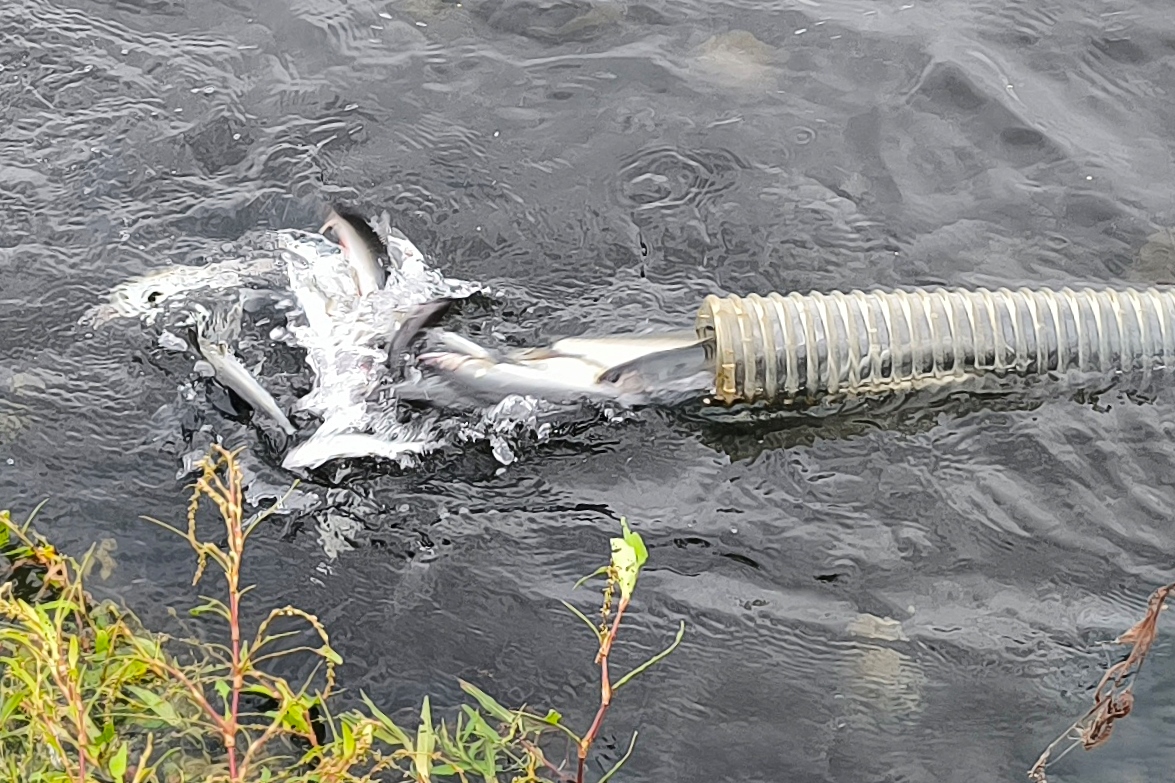 鮎の禁漁期間になり、昨日は漁協が産卵用の鮎を川に放流しておりました。(画像10)
